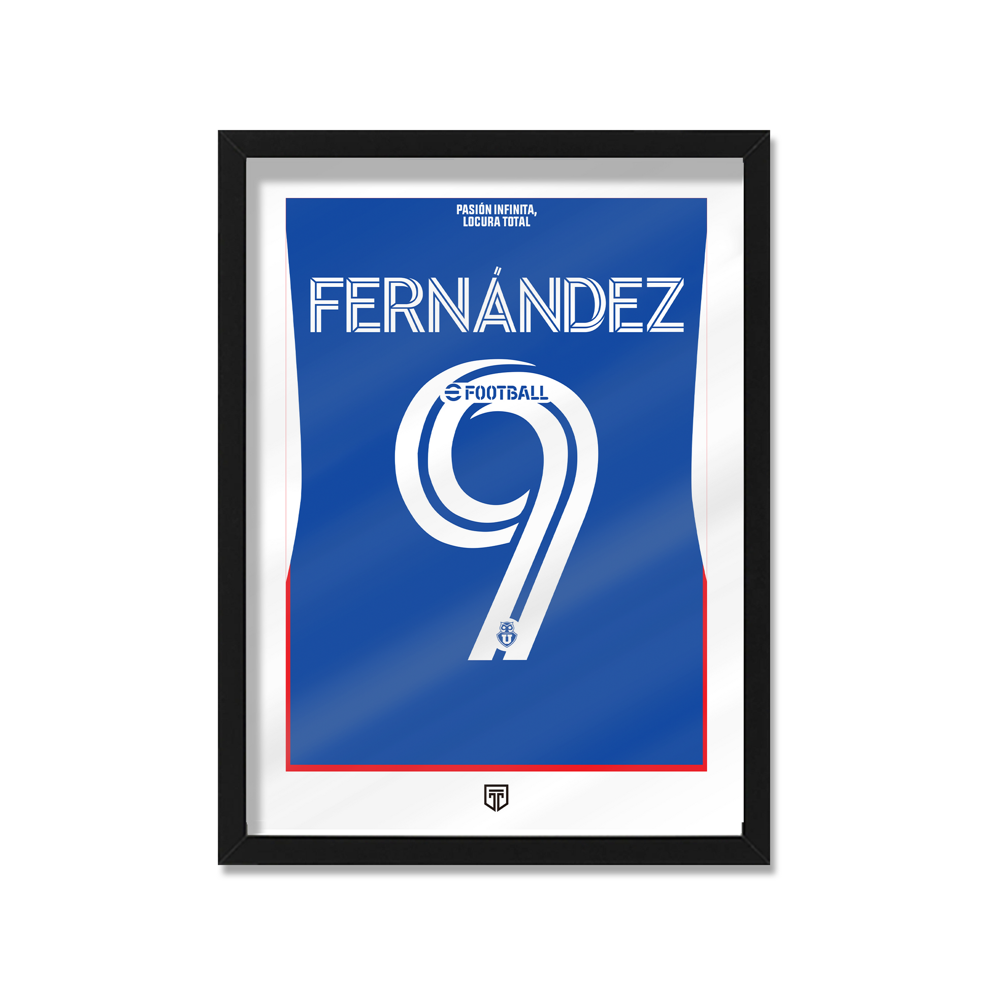 CUADRO DECORATIVO CAMISETA ENMARCADA FÚTBOL ILUSTRACIÓN UNIVERSIDAD DE CHILE 2023 LEANDRO FERNÁNDEZ DORSAL 9 UCH