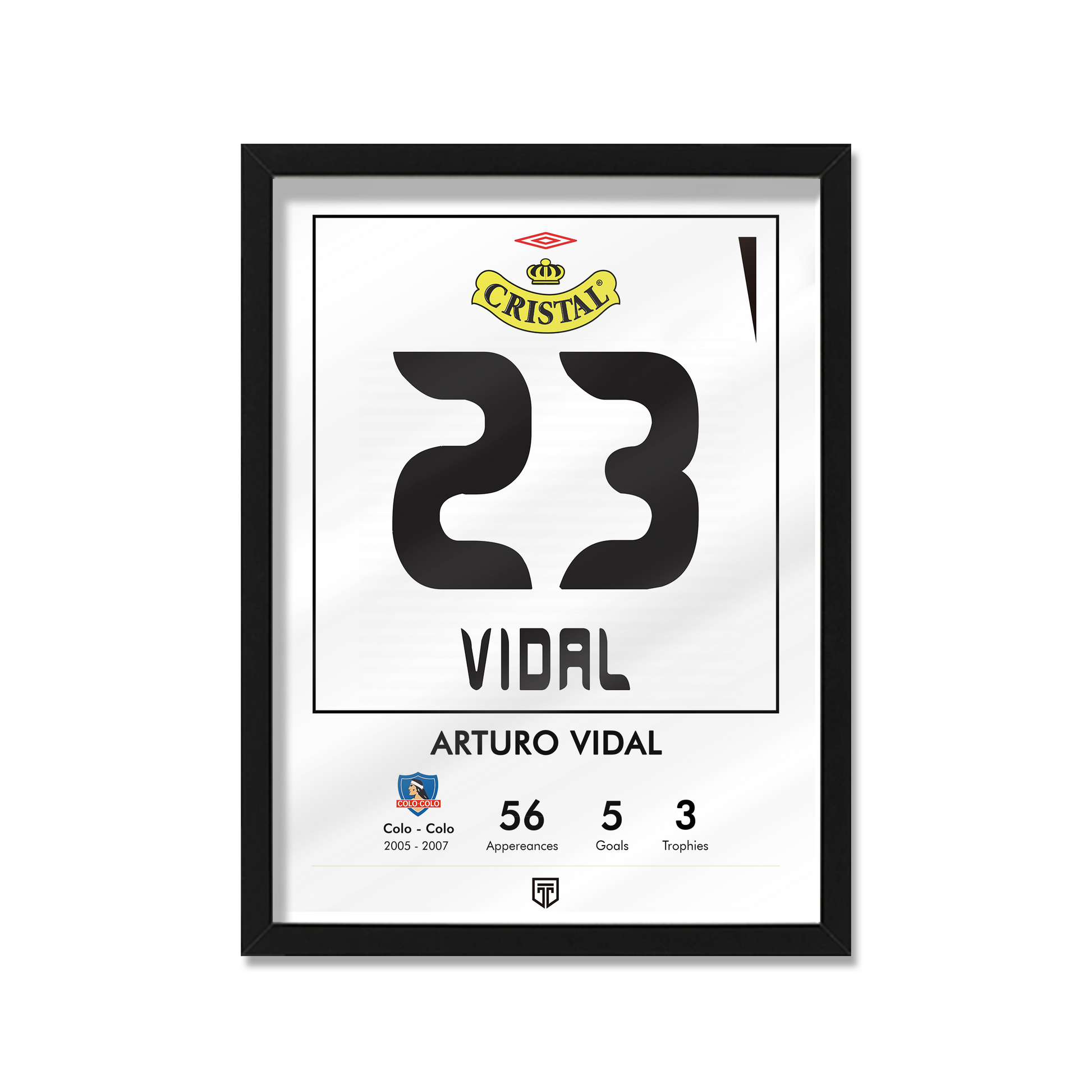 CUADRO DECORATIVO CAMISETA ENMARCADA FÚTBOL ILUSTRACIÓN HALL OF FAME HOF ARTURO VIDAL 2006 CC ESTADÍSTICAS STATS