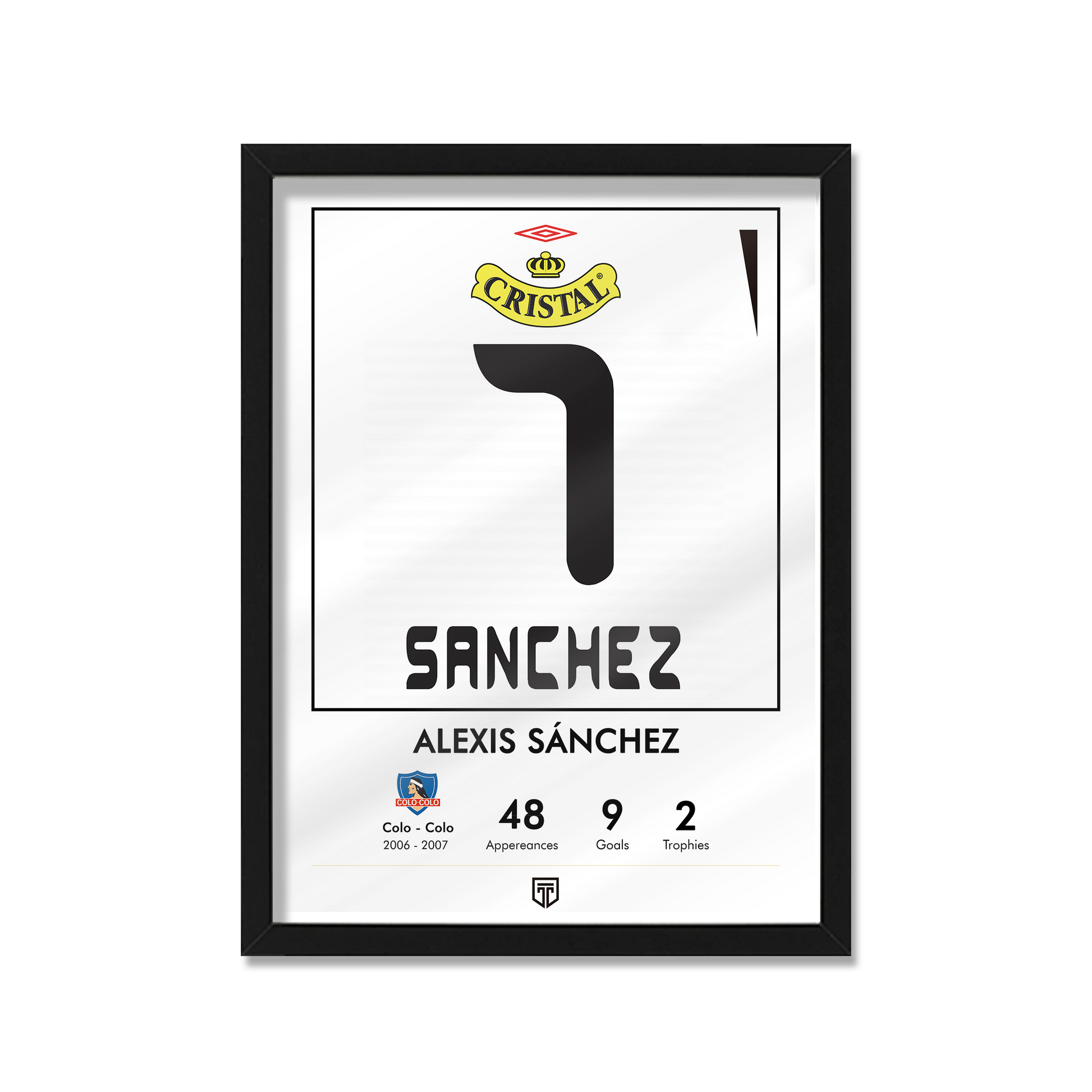 CUADRO DECORATIVO CAMISETA ENMARCADA FÚTBOL ILUSTRACIÓN HALL OF FAME ALEXIS SANCHEZ COLO COLO 2006 ESTADÍSTICAS STATS