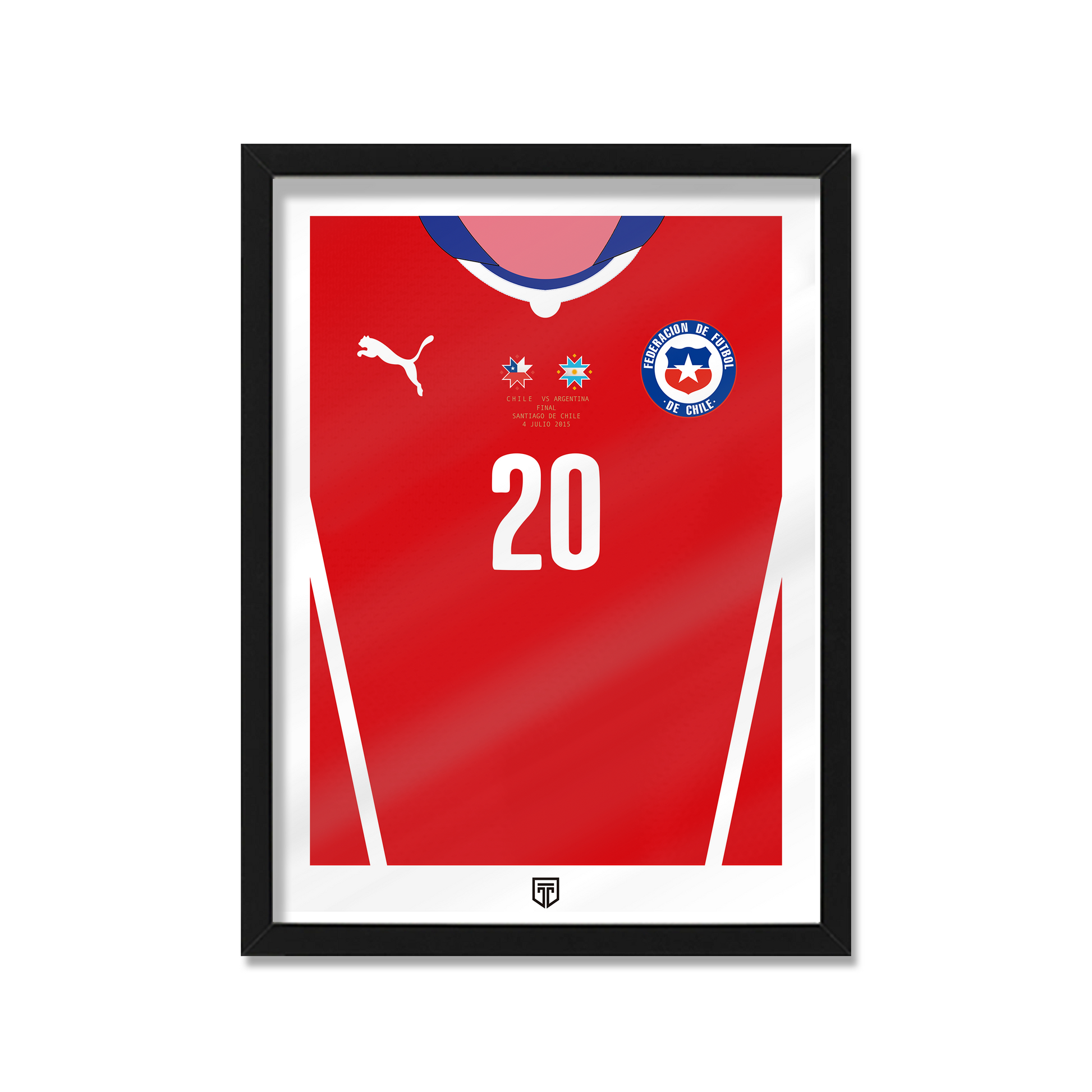 CUADRO DECORATIVO CAMISETA ENMARCADA FÚTBOL ILUSTRACIÓN CHILE 2015 FRONTAL FINAL COPA AMÉRICA CHILE VS ARGENTINA CHARLES ARANGUIZ 2020 PUMA