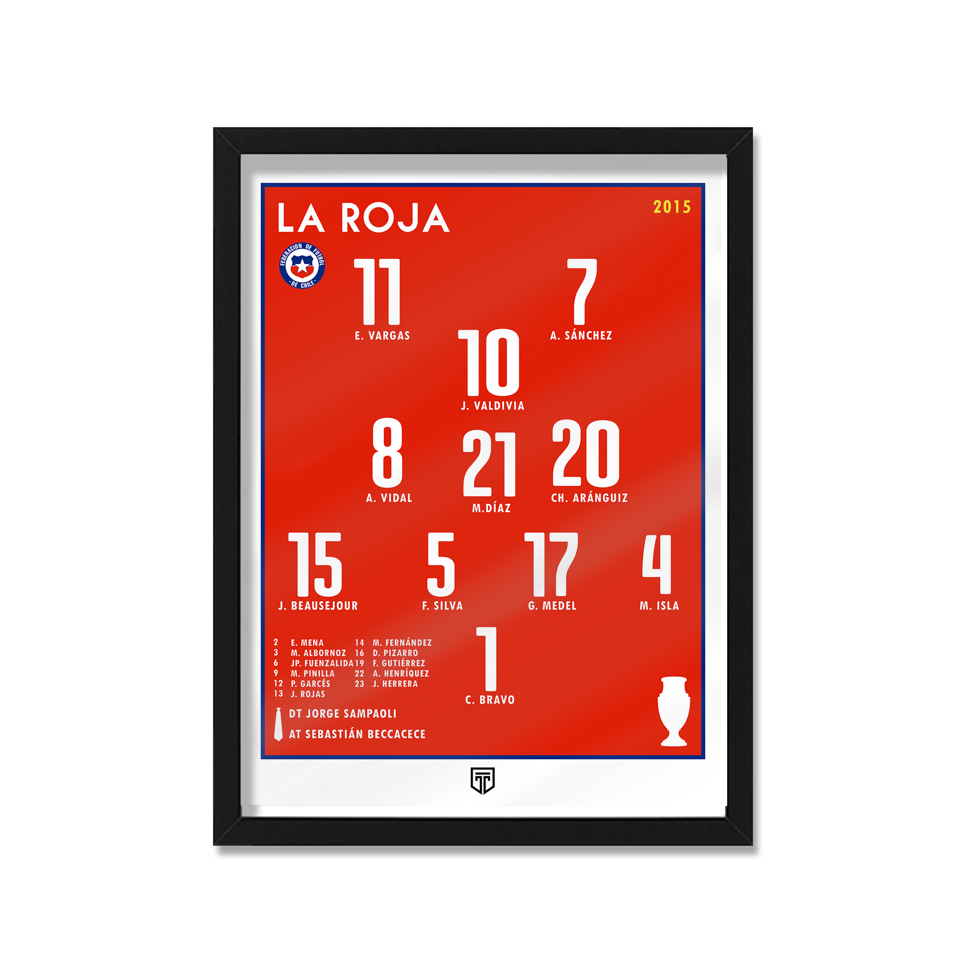 CUADRO DECORATIVO FÚTBOL ILUSTRACIÓN SQUAD SELECCIÓN CHILENA LA ROJA CHILE 2015 CAMPEÓN AMÉRICA ESCUADRA FORMACIÓN