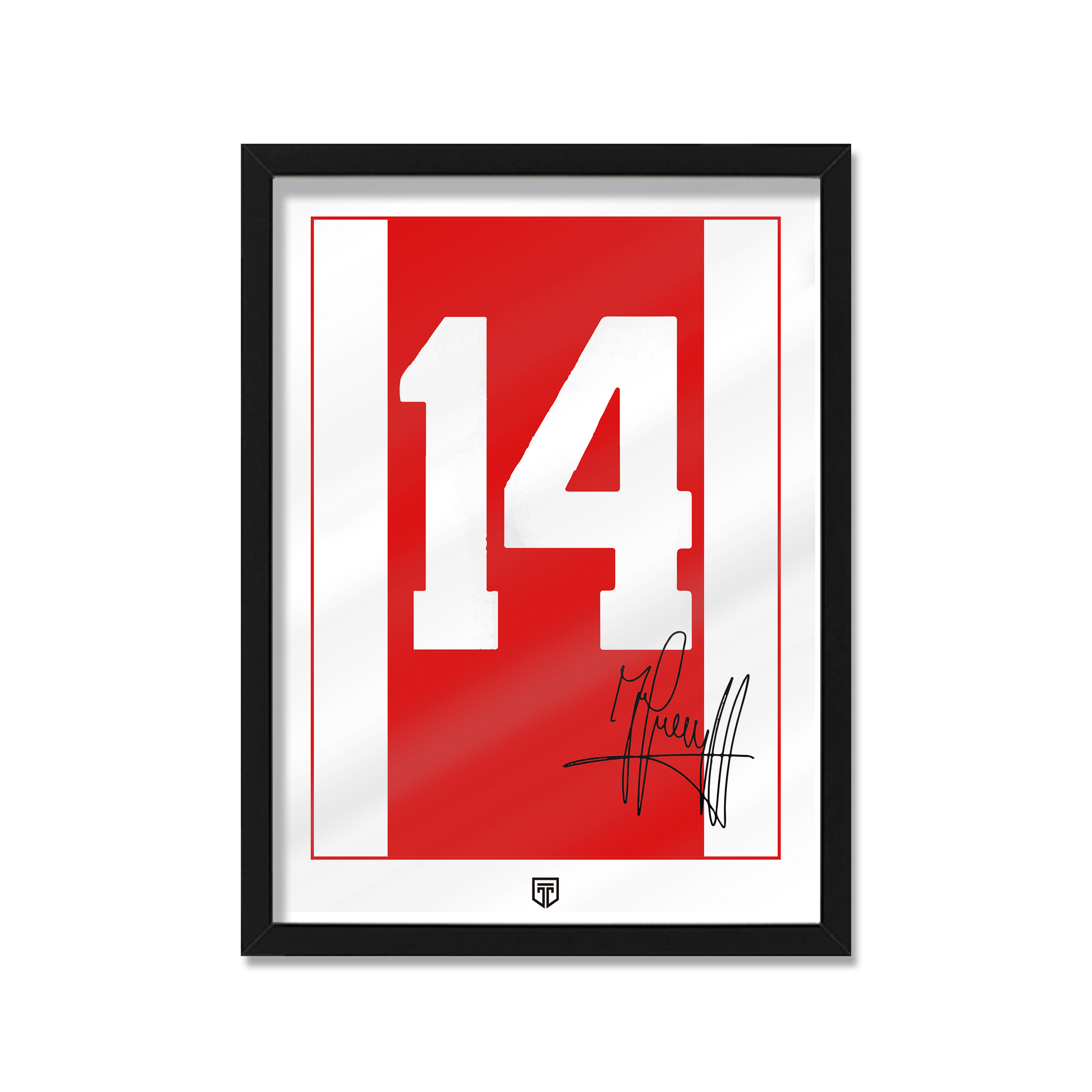 CUADRO DECORATIVO CAMISETA ENMARCADA FÚTBOL ILUSTRACIÓN CRUYFF AJAX 14 DORSAL FIRMA