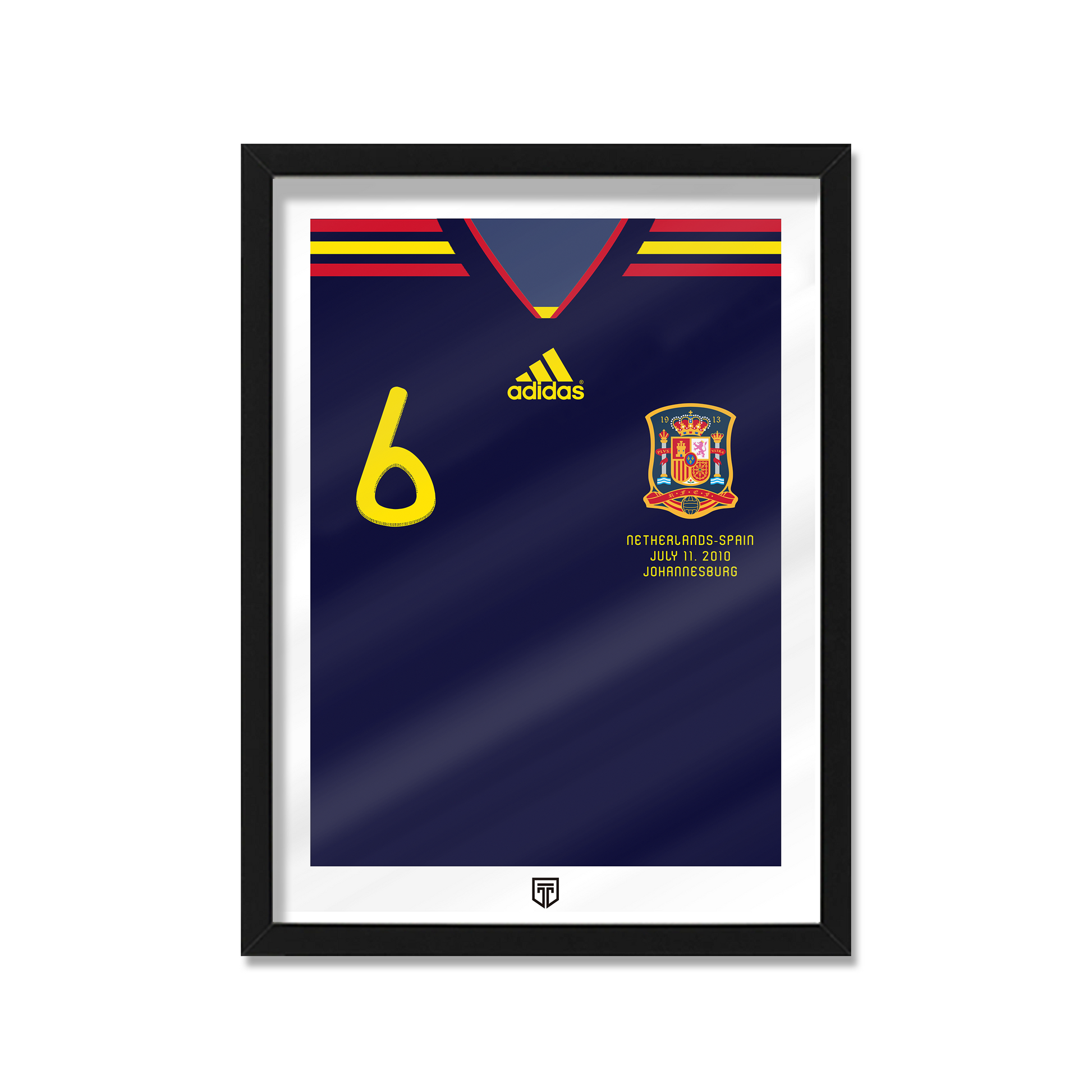 CUADRO DECORATIVO CAMISETA ENMARCADA FÚTBOL ILUSTRACIÓN ESPAÑA 2010 CAMPEONES DEL MUNDO WORLD CUP 2010 SPAIN ANDRES INIESTA