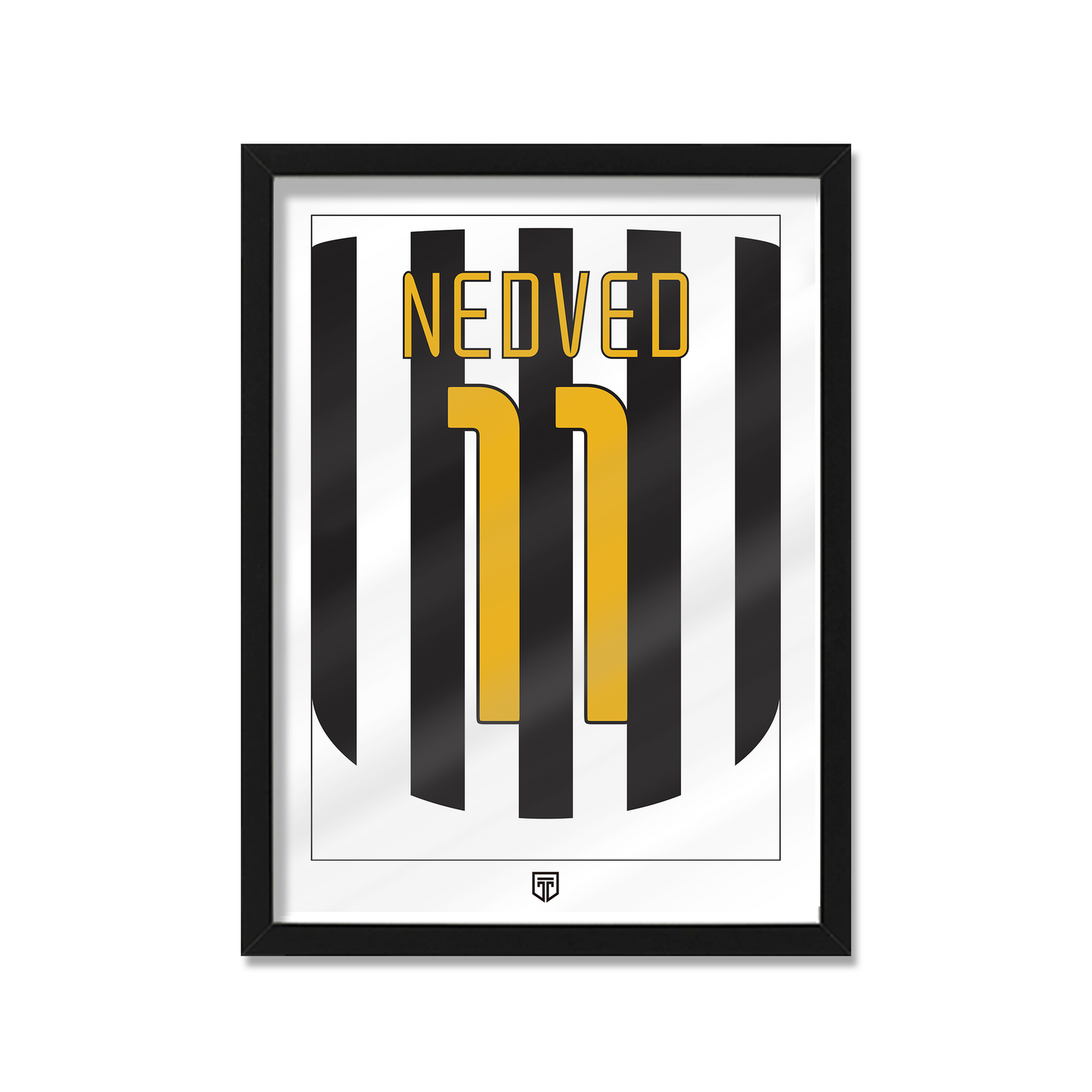 CUADRO DECORATIVO CAMISETA ENMARCADA FÚTBOL ILUSTRACIÓN JUVENTUS NEDVED SERIE A ITALIA