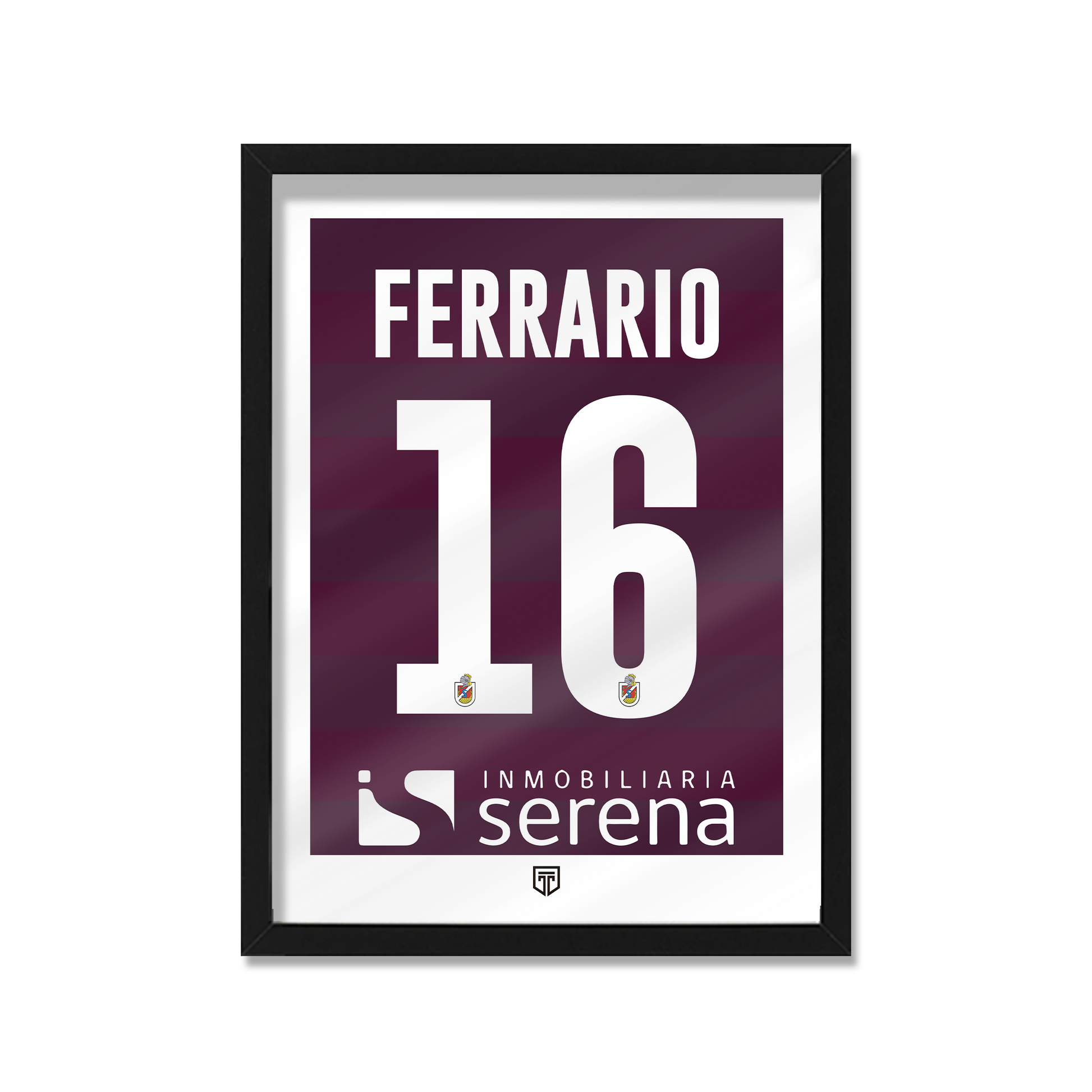 CUADRO DECORATIVO CAMISETA ENMARCADA FÚTBOL ILUSTRACIÓN LA SERENA 2020 ENZO FERRARIO DORSAL 16 FUTBOL CHILENO