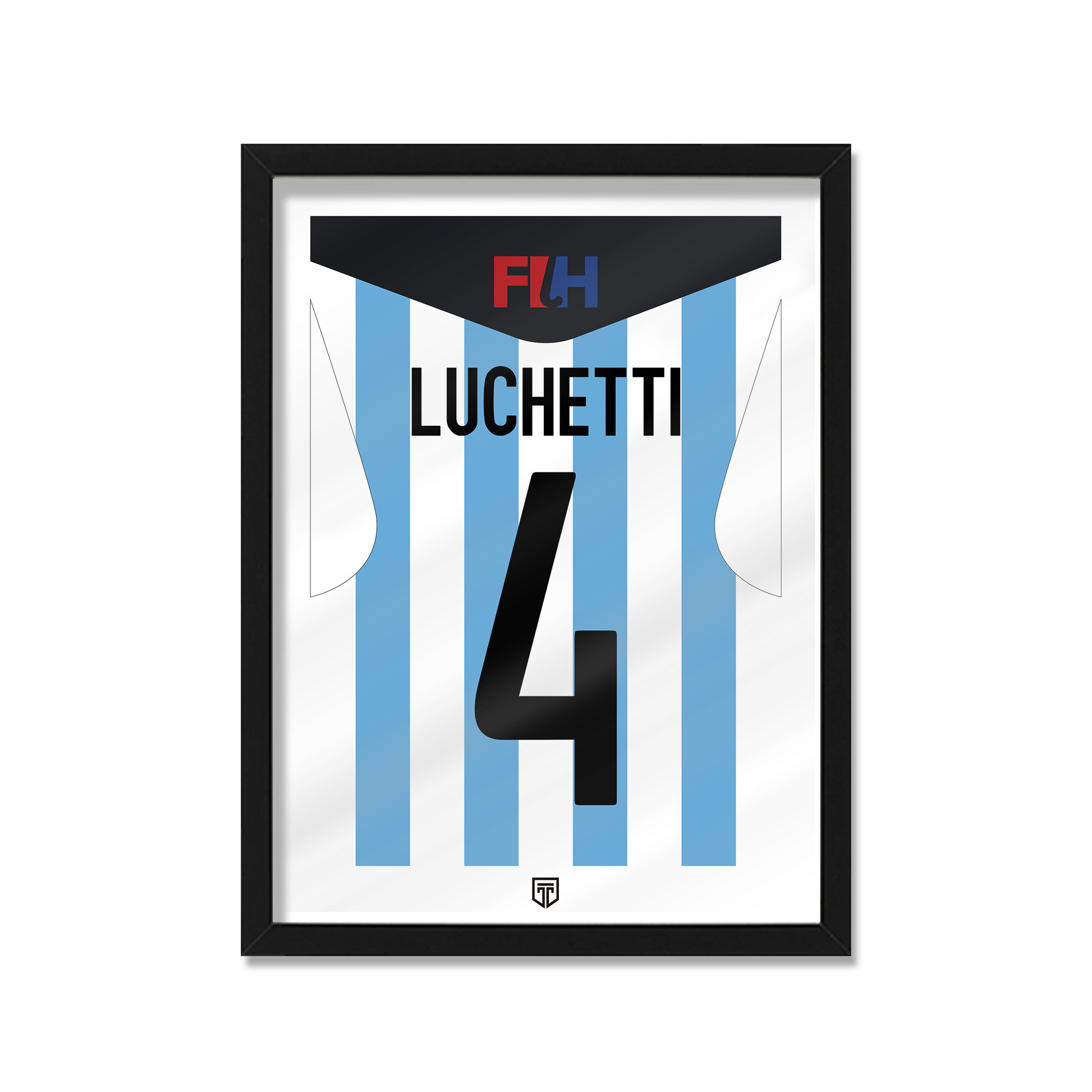 CUADRO DECORATIVO CAMISETA ENMARCADA HOCKEY ILUSTRACIÓN LEONAS ARGENTINA LUCHETTI
