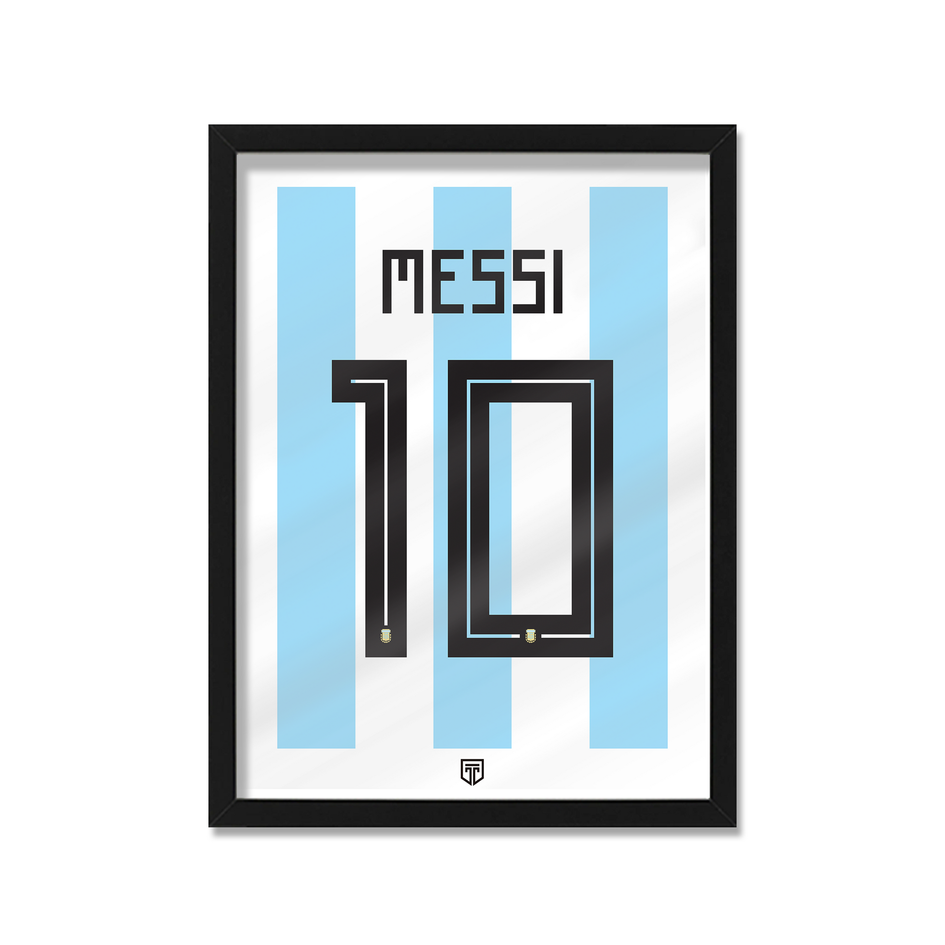 CUADRO DECORATIVO CAMISETA ENMARCADA FÚTBOL ILUSTRACIÓN ARGENTINA 2018 LIONEL MESSI 10