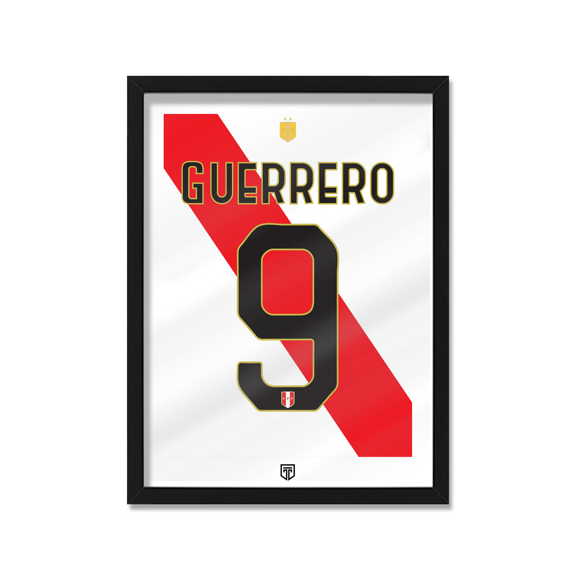 CUADRO DECORATIVO CAMISETA ENMARCADA FÚTBOL ILUSTRACIÓN PERÚ 2019 PAOLO GUERRERO DORSAL 9