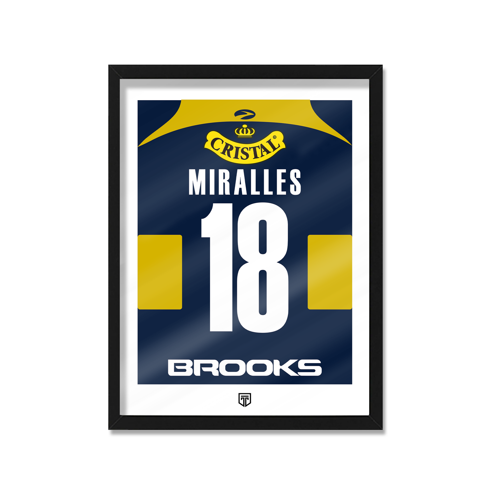 CUADRO DECORATIVO CAMISETA ENMARCADA FÚTBOL ILUSTRACIÓN EVERTON VIÑA DEL MAR MIRALLES 18 BROOKS