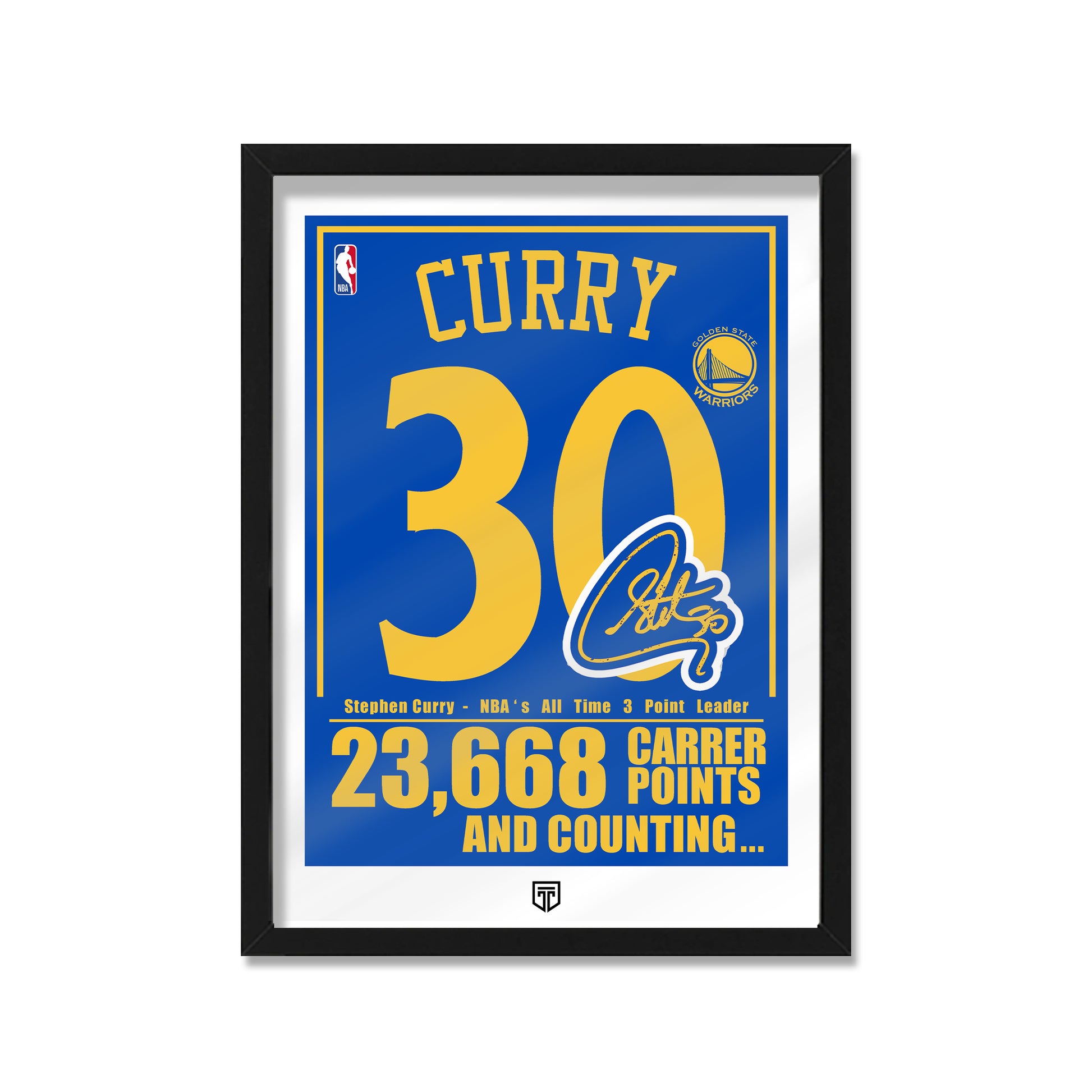 CUADRO DECORATIVO CAMISETA ENMARCADA BASKETBALL ILUSTRACIÓN STEPHEN CURRY CAREER POINTS HALL OF FAME HOF NBA ALL STAR 30 TRESCUADRA PUNTOS DE CARRERA CURRY