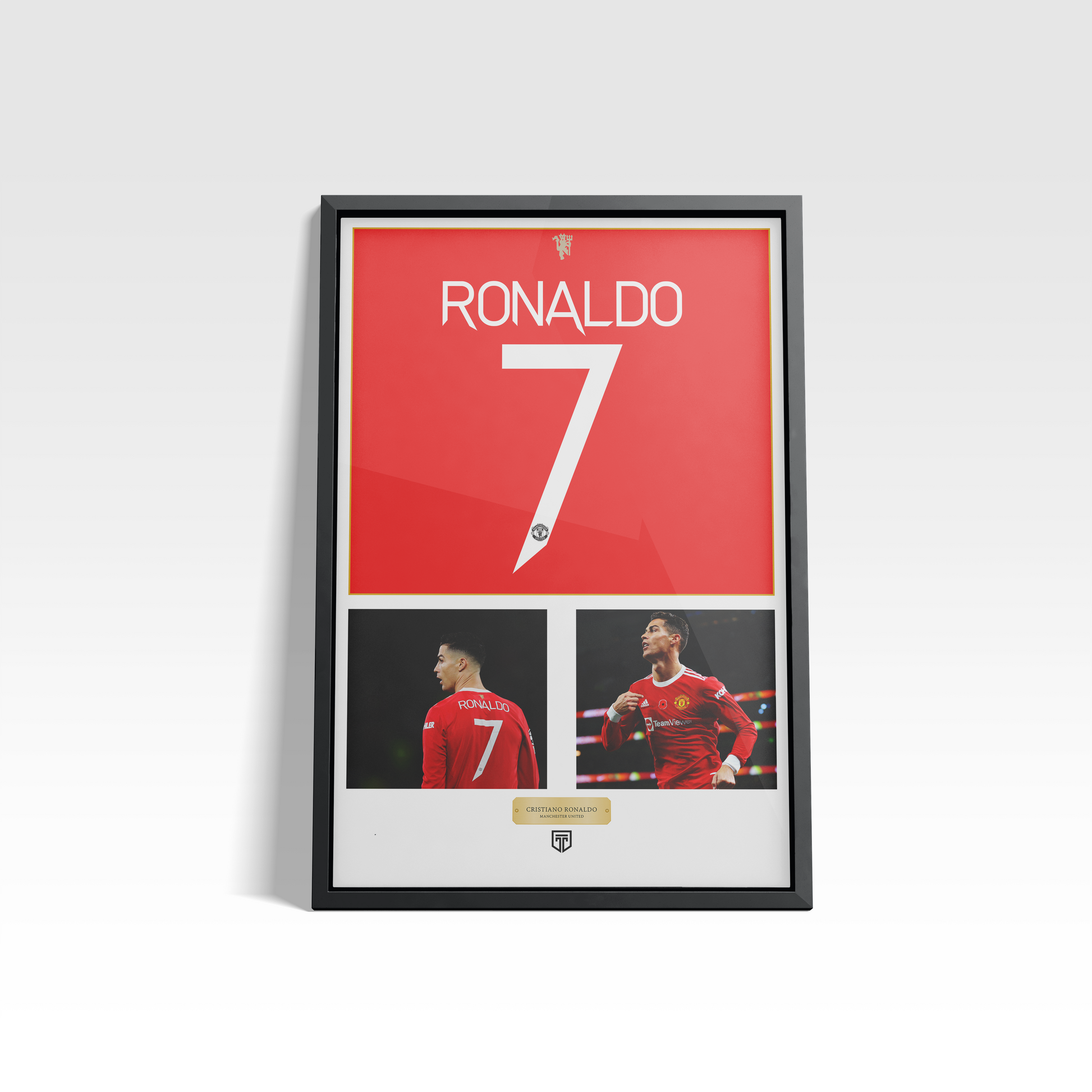 CUADRO DECORATIVO CAMISETA ENMARCADA FÚTBOL ILUSTRACIÓN CRISTIANO RONALDO 7 MANCHESTER UNITED MEMORABILIA