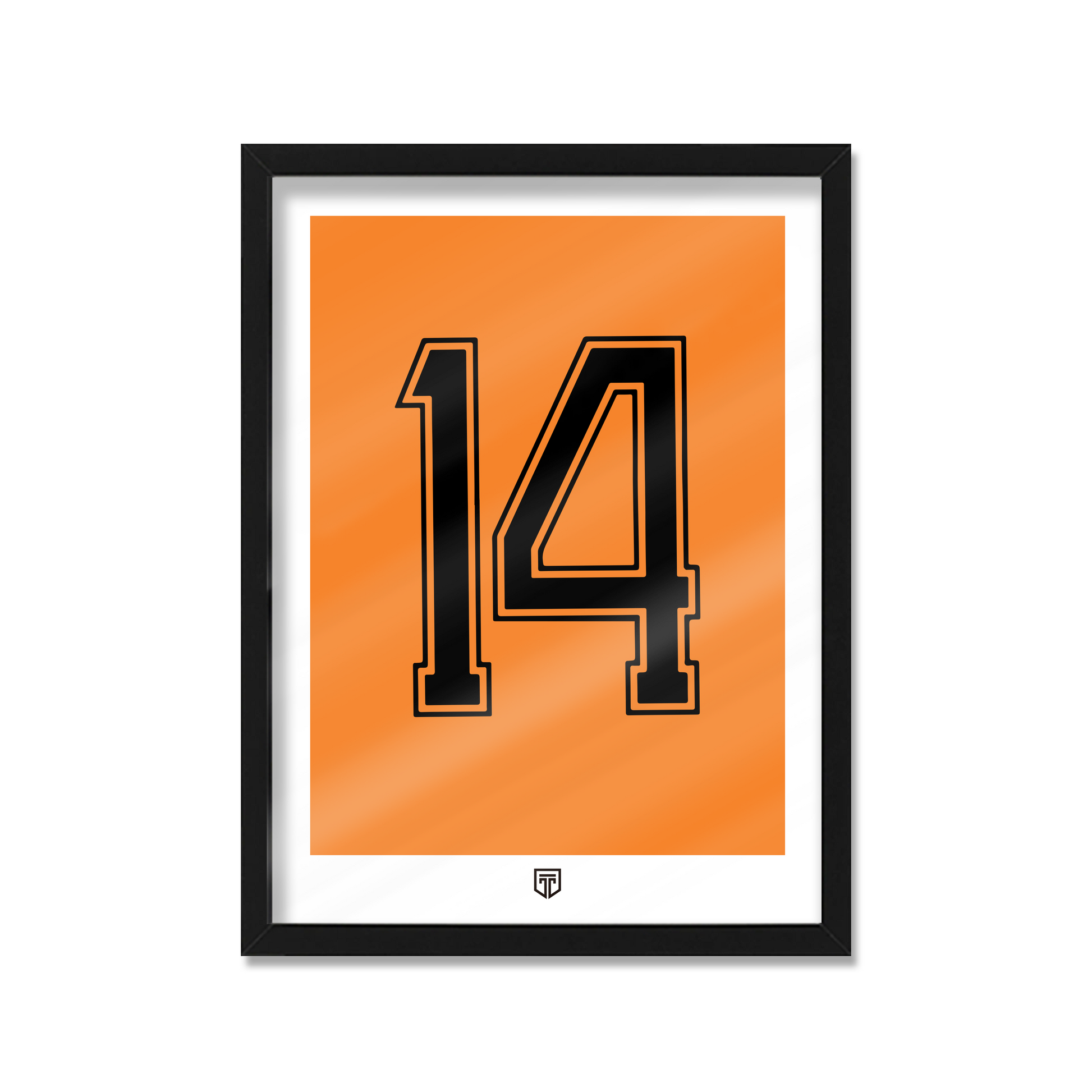 CUADRO DECORATIVO CAMISETA ENMARCADA FÚTBOL ILUSTRACIÓN RETRO CRUYFF HOLANDA 14 MUNDIAL