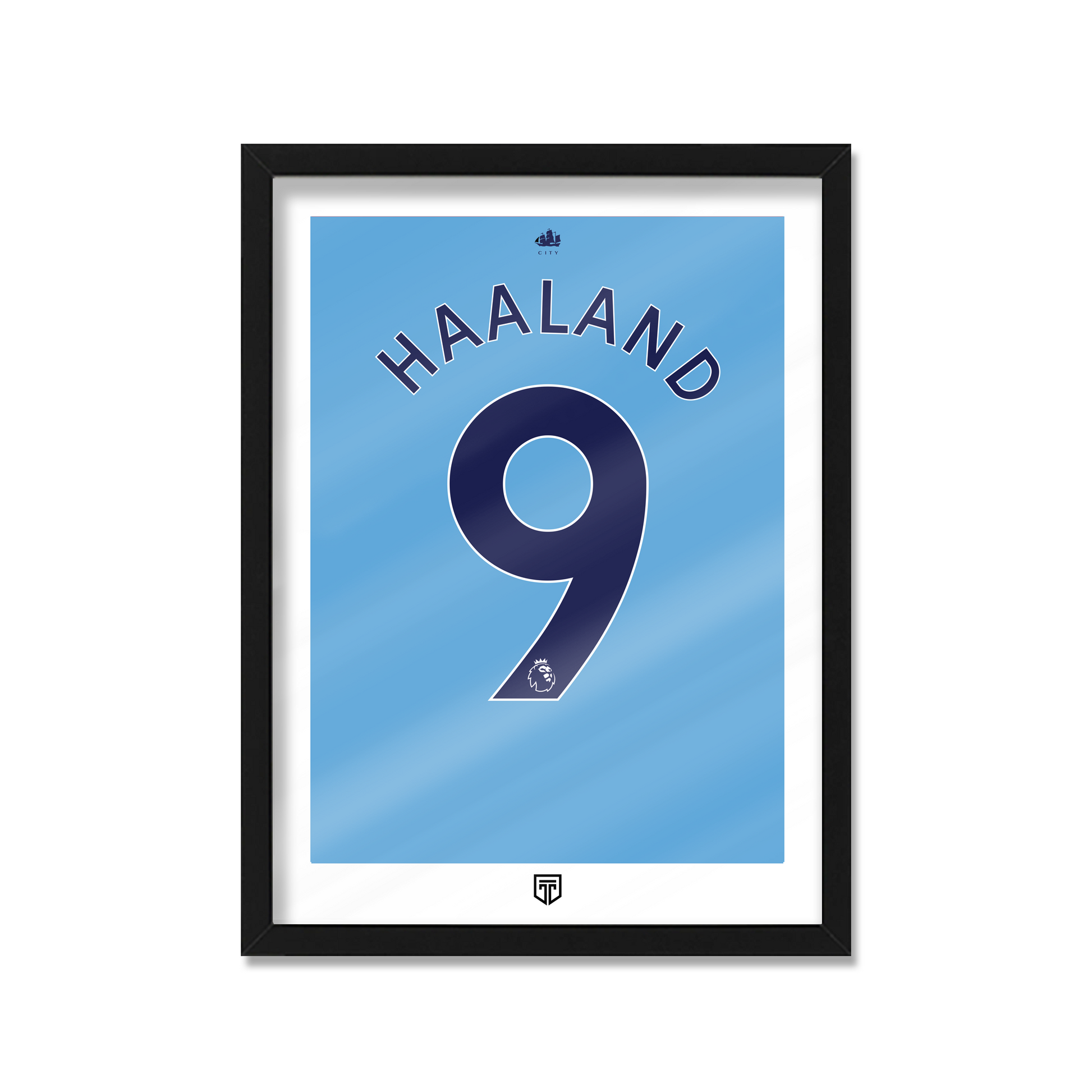 CUADRO DECORATIVO CAMISETA ENMARCADA FÚTBOL ILUSTRACIÓN HAALAND MANCHESTER CITY 2022