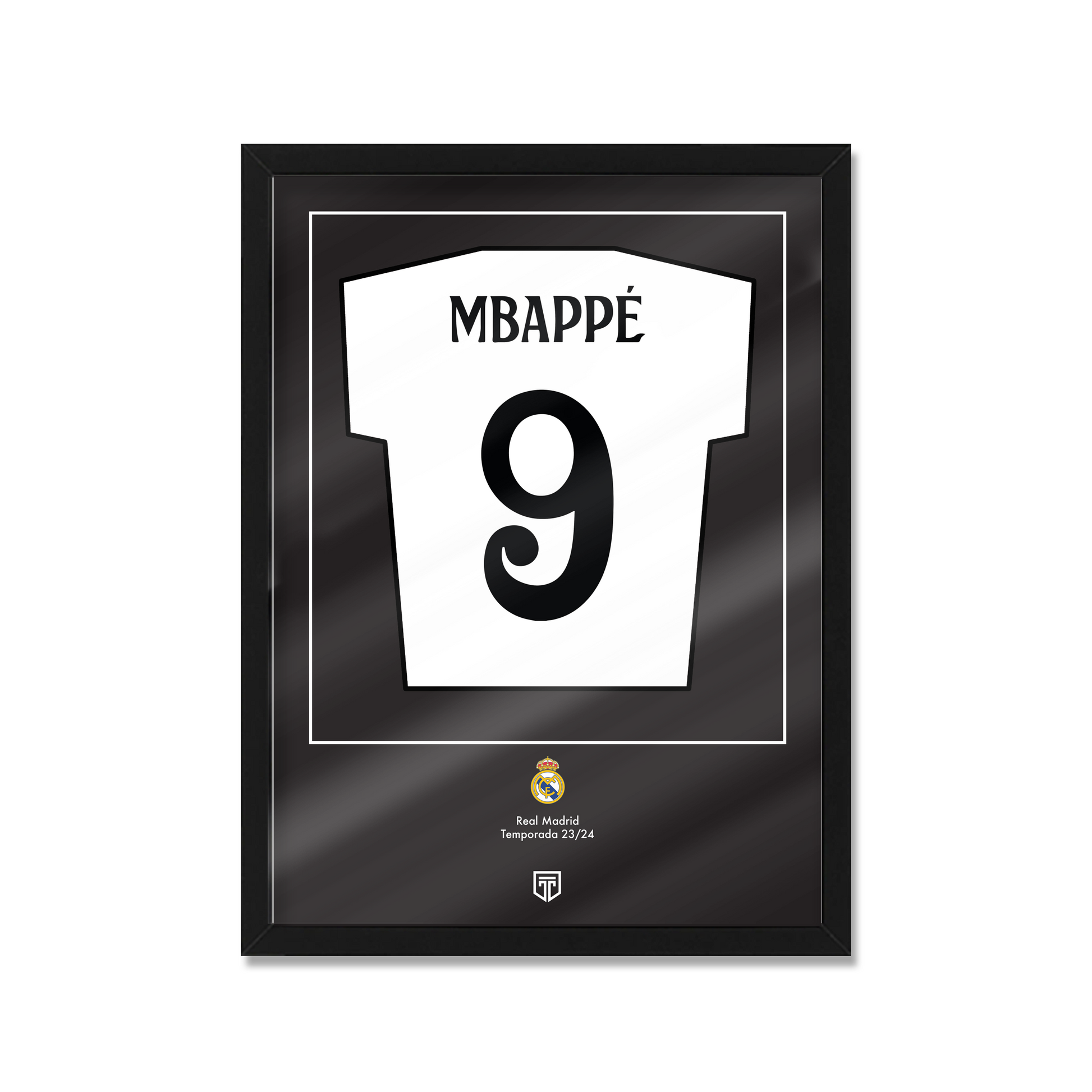CUADRO DECORATIVO CAMISETA ENMARCADA FÚTBOL ILUSTRACIÓN MBAPPÉ REAL MADRID 2024