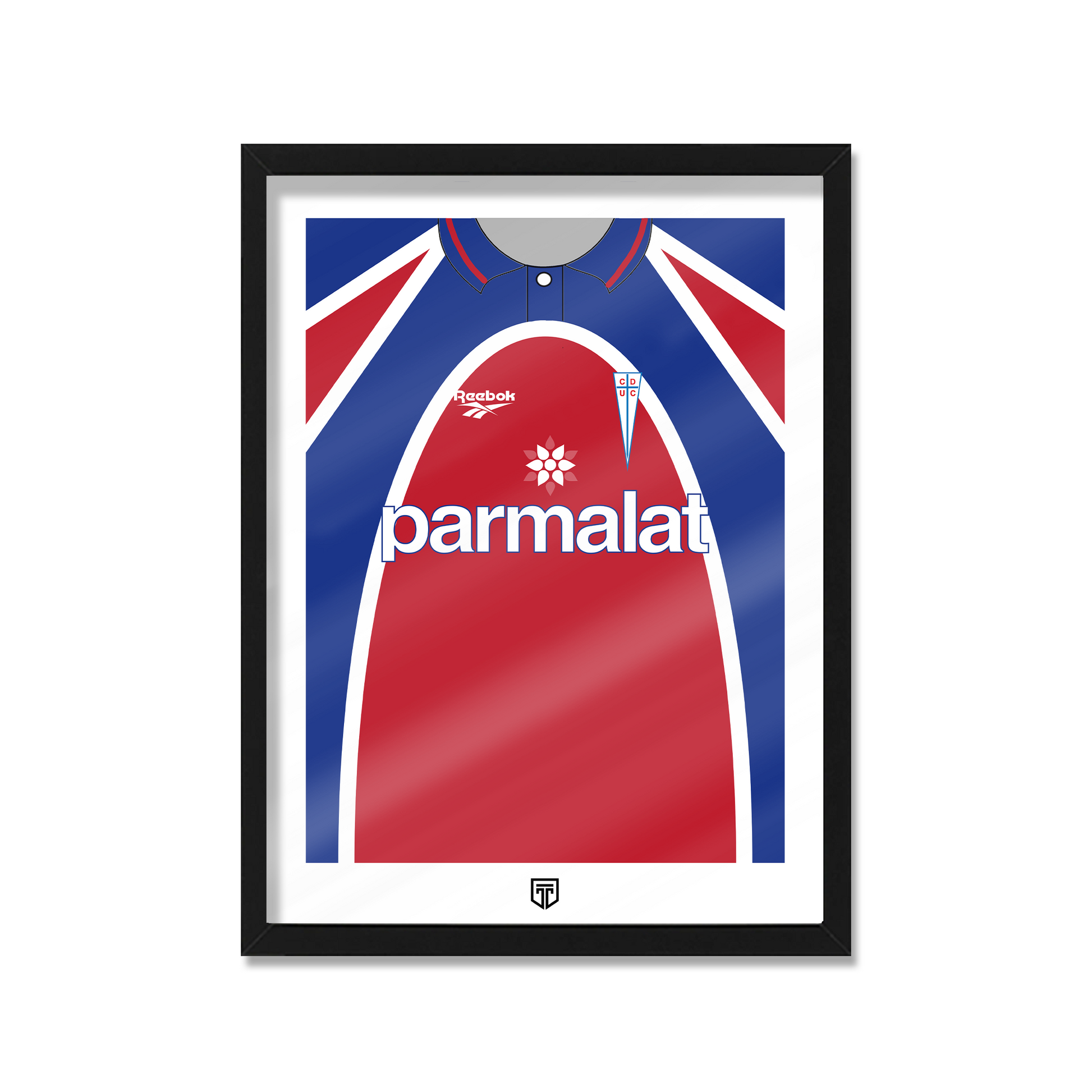 CUADRO DECORATIVO CAMISETA ENMARCADA FÚTBOL ILUSTRACIÓN UNIVERSIDAD CATÓLICA ROJA PARMALAT REEBOOK