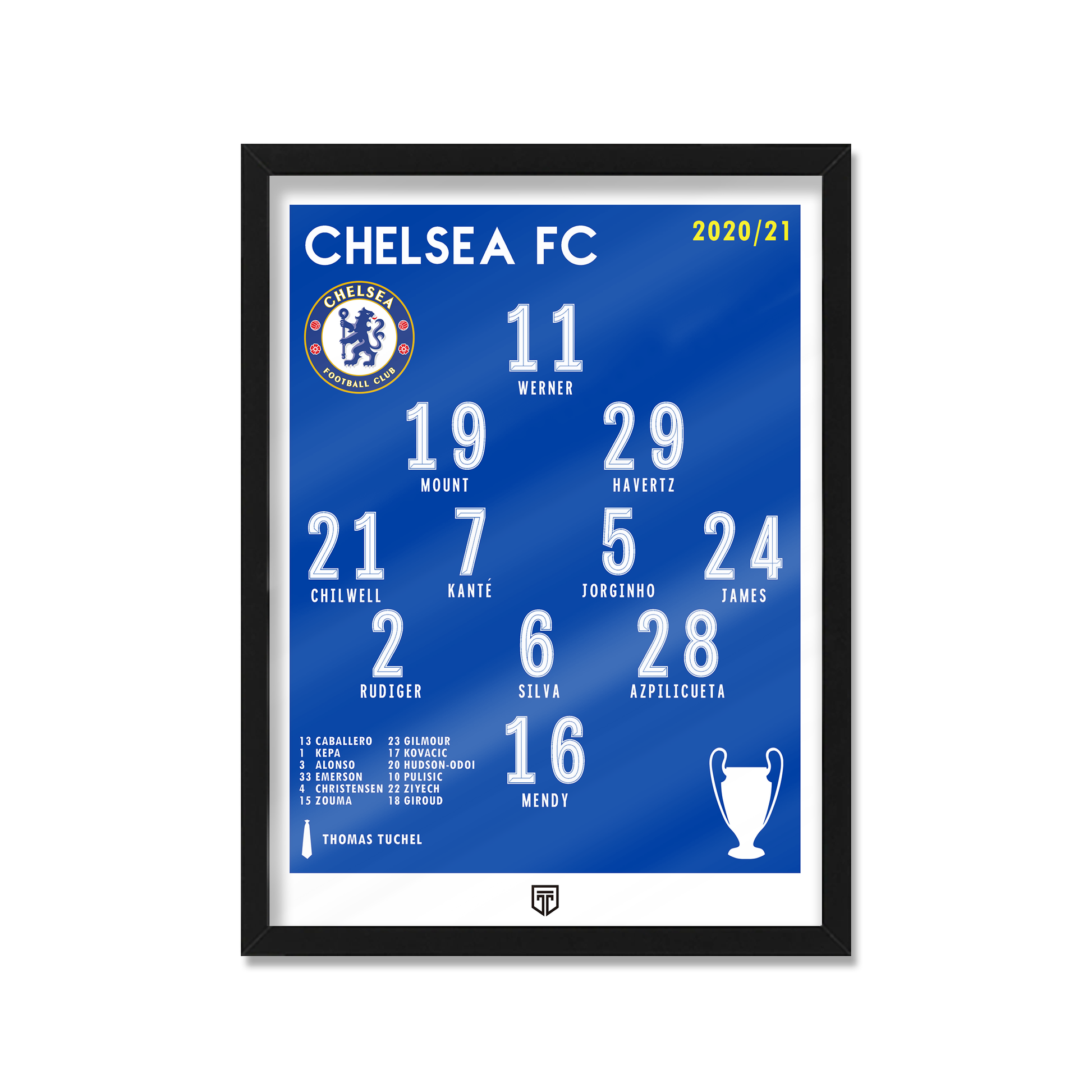CUADRO DECORATIVO ESCUADRA FORMACIÓN ENMARCADA FÚTBOL ILUSTRACIÓN CHELSEA 2021