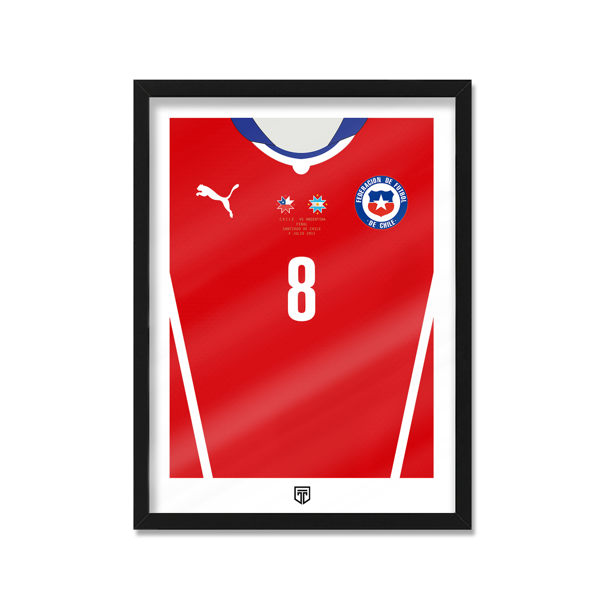 CUADRO DECORATIVO CAMISETA ENMARCADA FÚTBOL ILUSTRACIÓN ARTURO VIDAL CHILE 2015 FINAL COPA AMÉRICA
