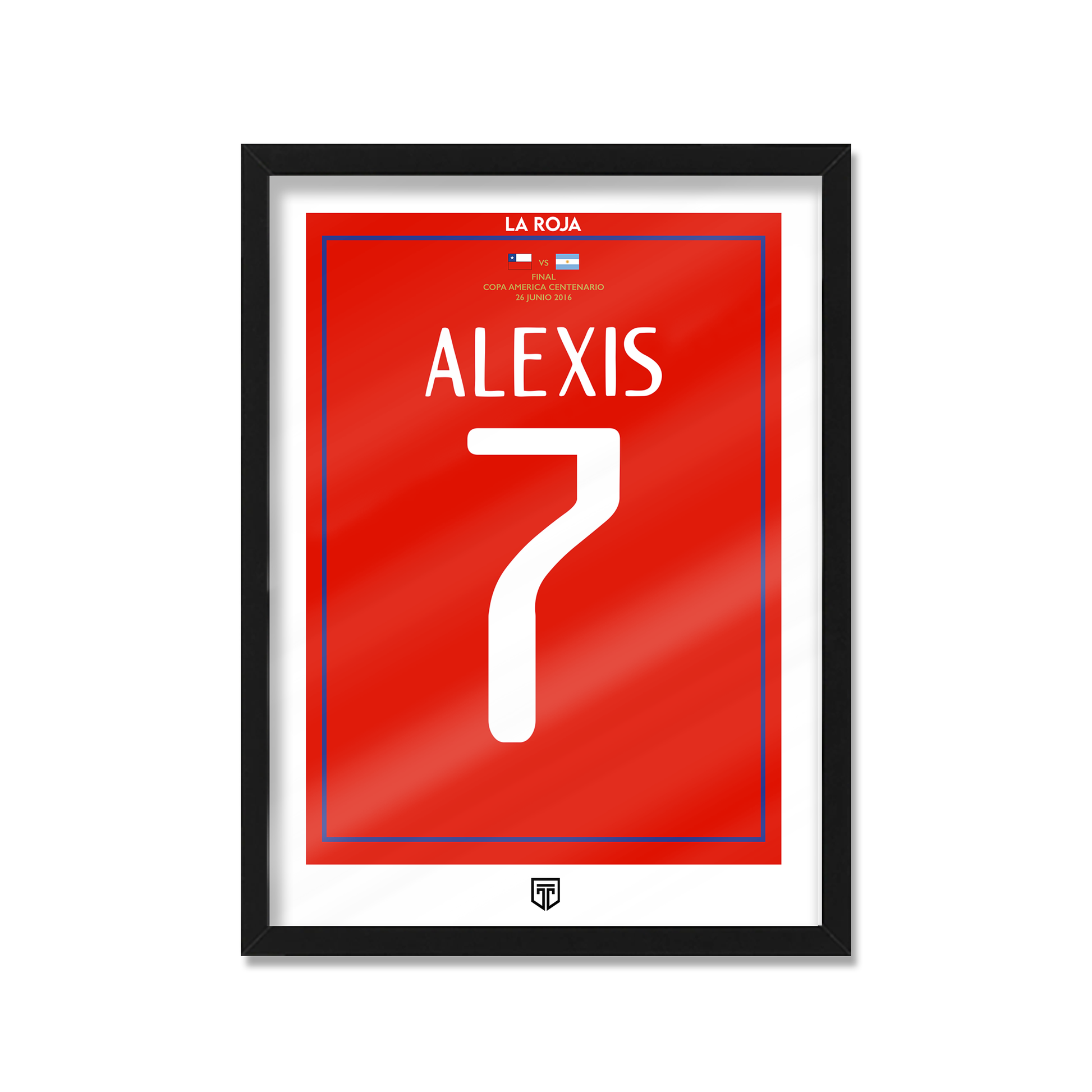 CUADRO DECORATIVO CAMISETA ENMARCADA FÚTBOL ILUSTRACIÓN CHILE ALEXIS SÁNCHEZ 2016 COPA AMÉRICA