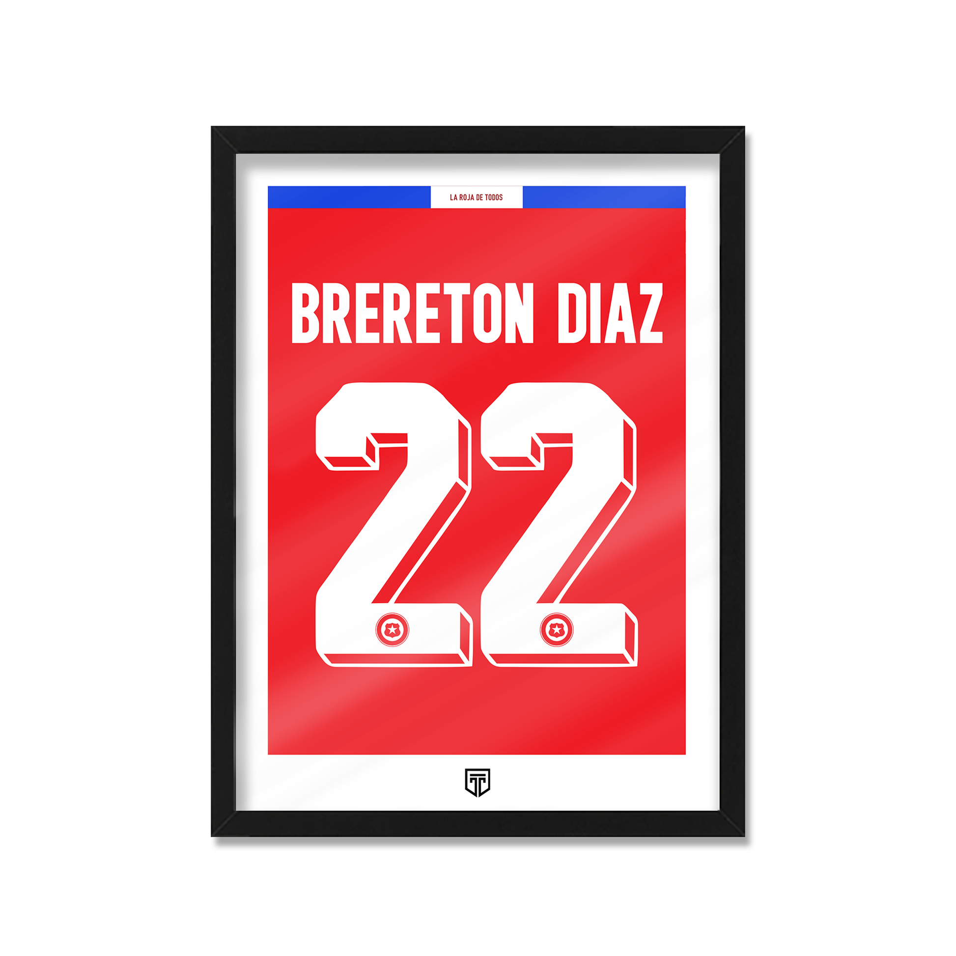CUADRO DECORATIVO CAMISETA ENMARCADA FÚTBOL ILUSTRACIÓN BEN BRERETON 2021 CHILE 22