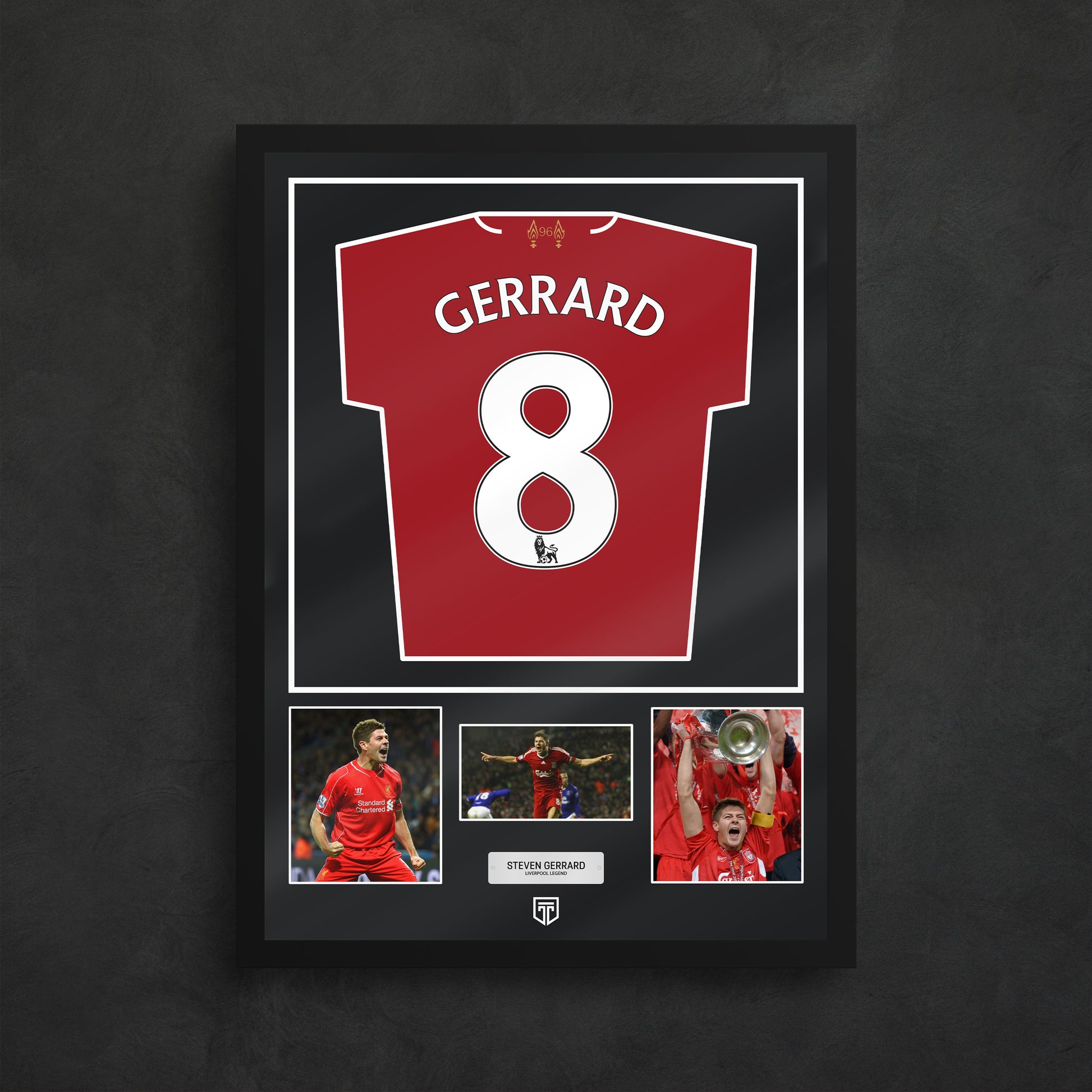 CUADRO DECORATIVO CAMISETA ENMARCADA FÚTBOL ILUSTRACIÓN STEVEN GERRARD MEMORABILIA LIVERPOOL