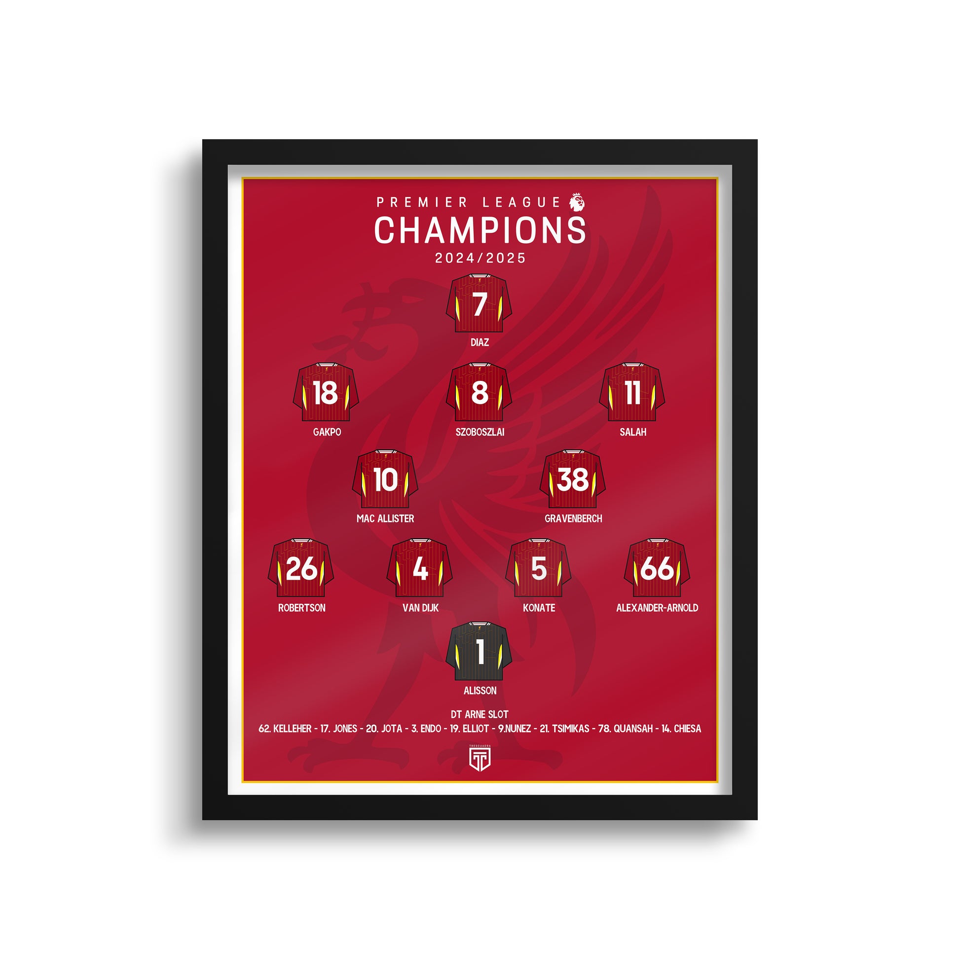 CUADRO FORMACIÓN LIVERPOOL CAMPEONES PREMIER LEAGUE 2024 2025 CHAMPIONS
