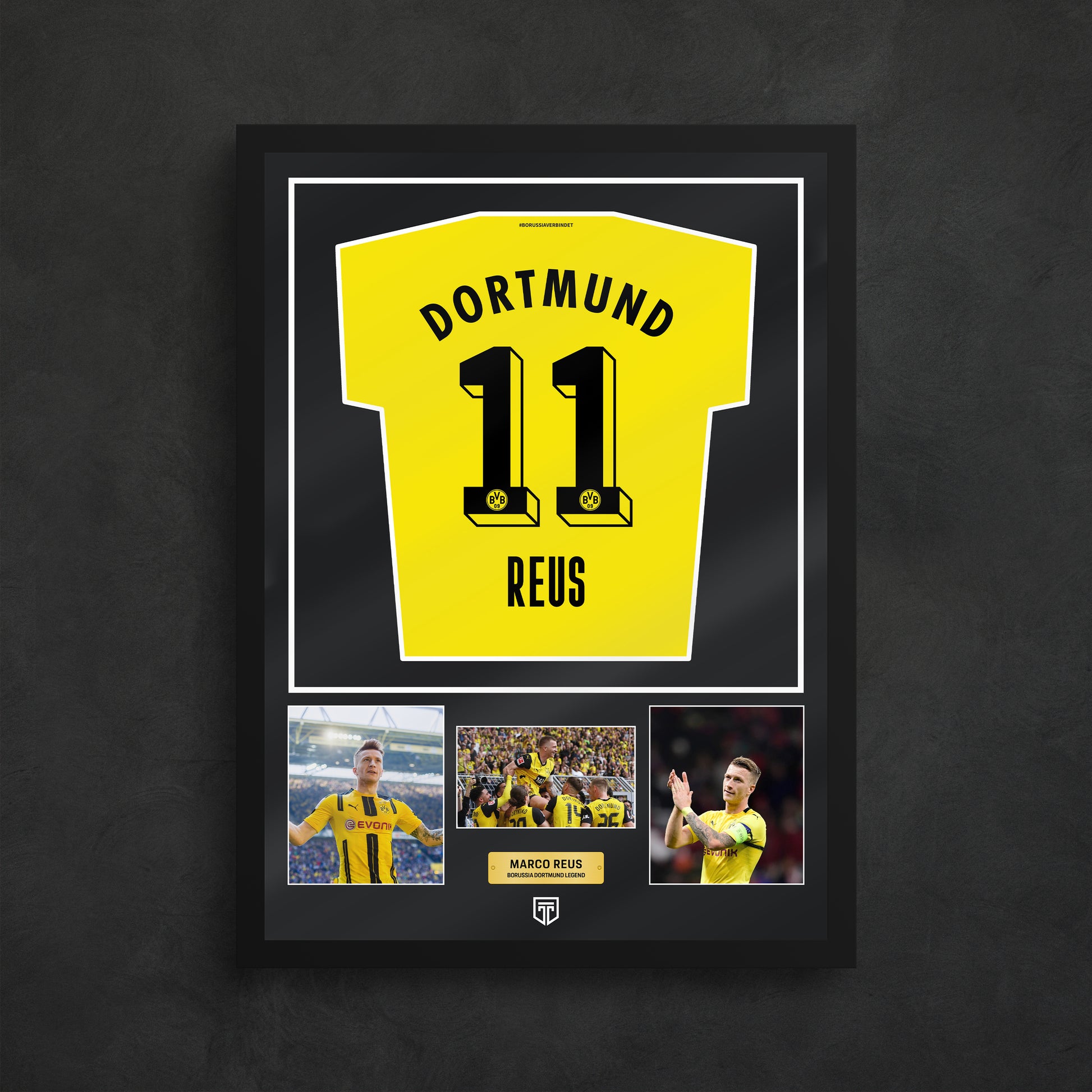 CUADRO DECORATIVO CAMISETA ENMARCADA FÚTBOL ILUSTRACIÓN BORUSSIA DORTMUND 11 MEMORABILIA LEGEND MARCO REUS