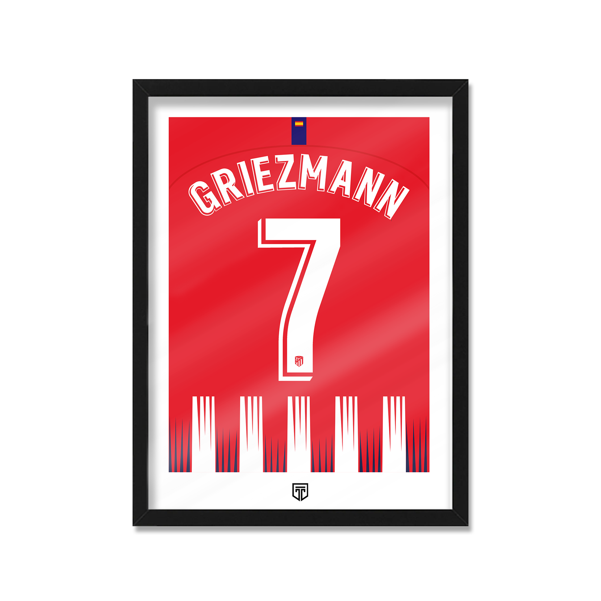 CUADRO DECORATIVO CAMISETA ENMARCADA FÚTBOL ILUSTRACIÓN GRIEZMANN ATLETICO MADRID 2018