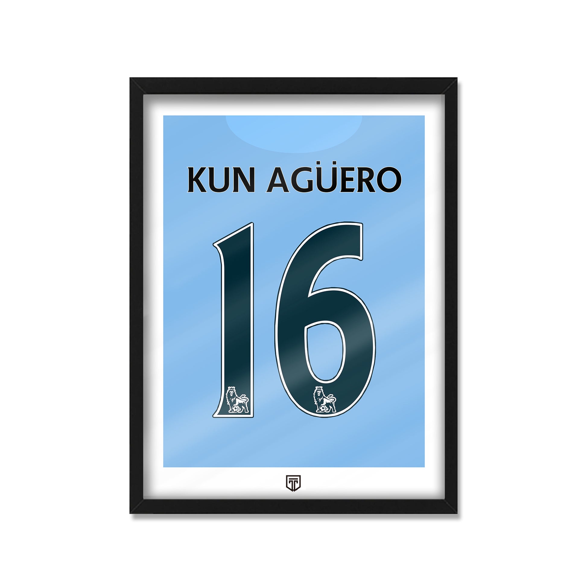 CUADRO DECORATIVO CAMISETA ENMARCADA FÚTBOL ILUSTRACIÓN SERGIO KUN AGUERO MANCHESTER CITY 2012