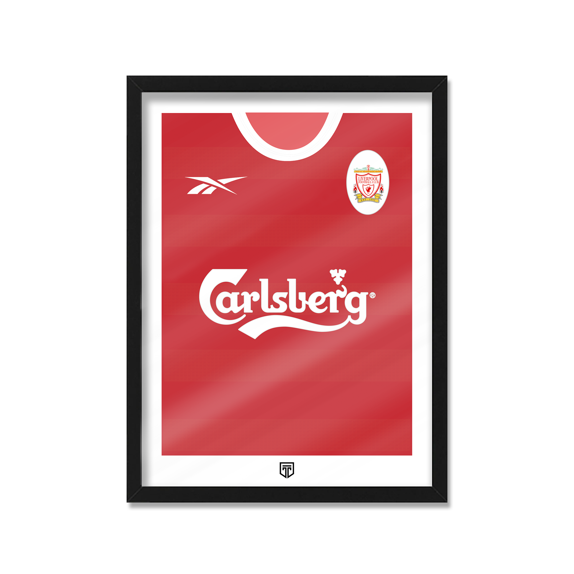 CUADRO DECORATIVO CAMISETA ENMARCADA FÚTBOL ILUSTRACIÓN LIVERPOOL 1998