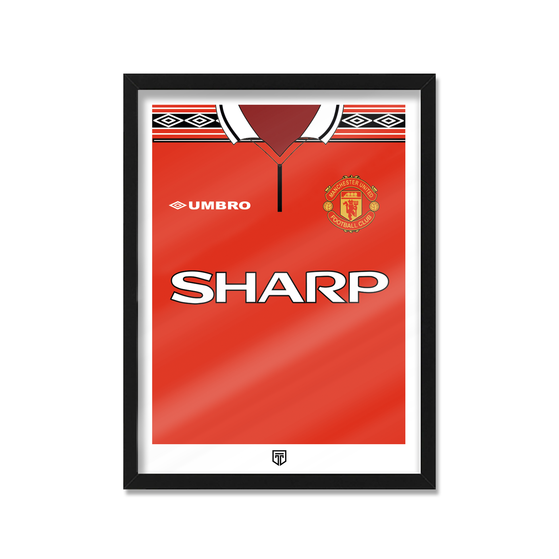 CUADRO DECORATIVO CAMISETA ENMARCADA FÚTBOL ILUSTRACIÓN ENMARCACIÓN MANCHESTER UNITED 1998 1999