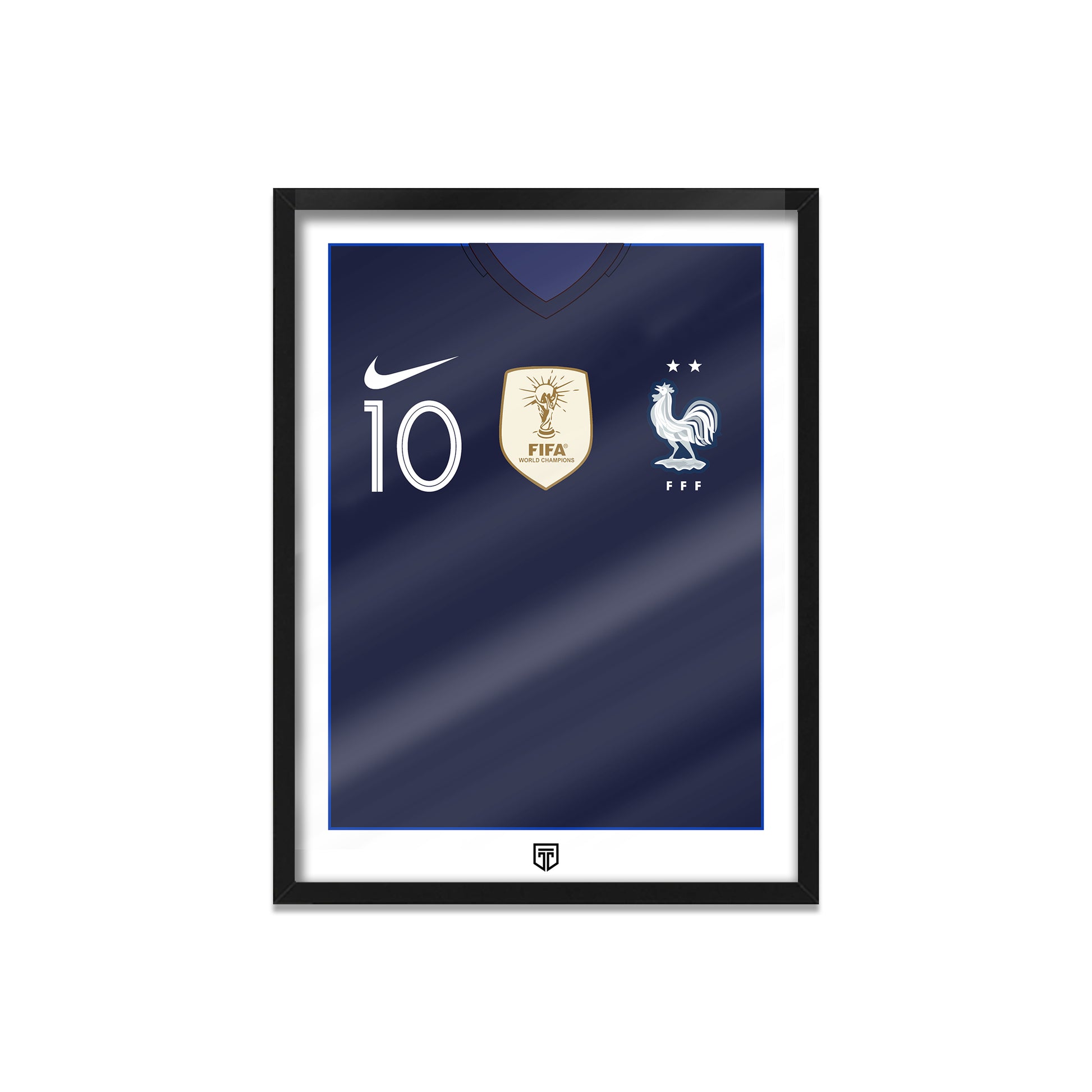 CUADRO DECORATIVO CAMISETA ENMARCADA FÚTBOL ILUSTRACIÓN MBAPPÉ FRANCIA 2018 MUNDIAL