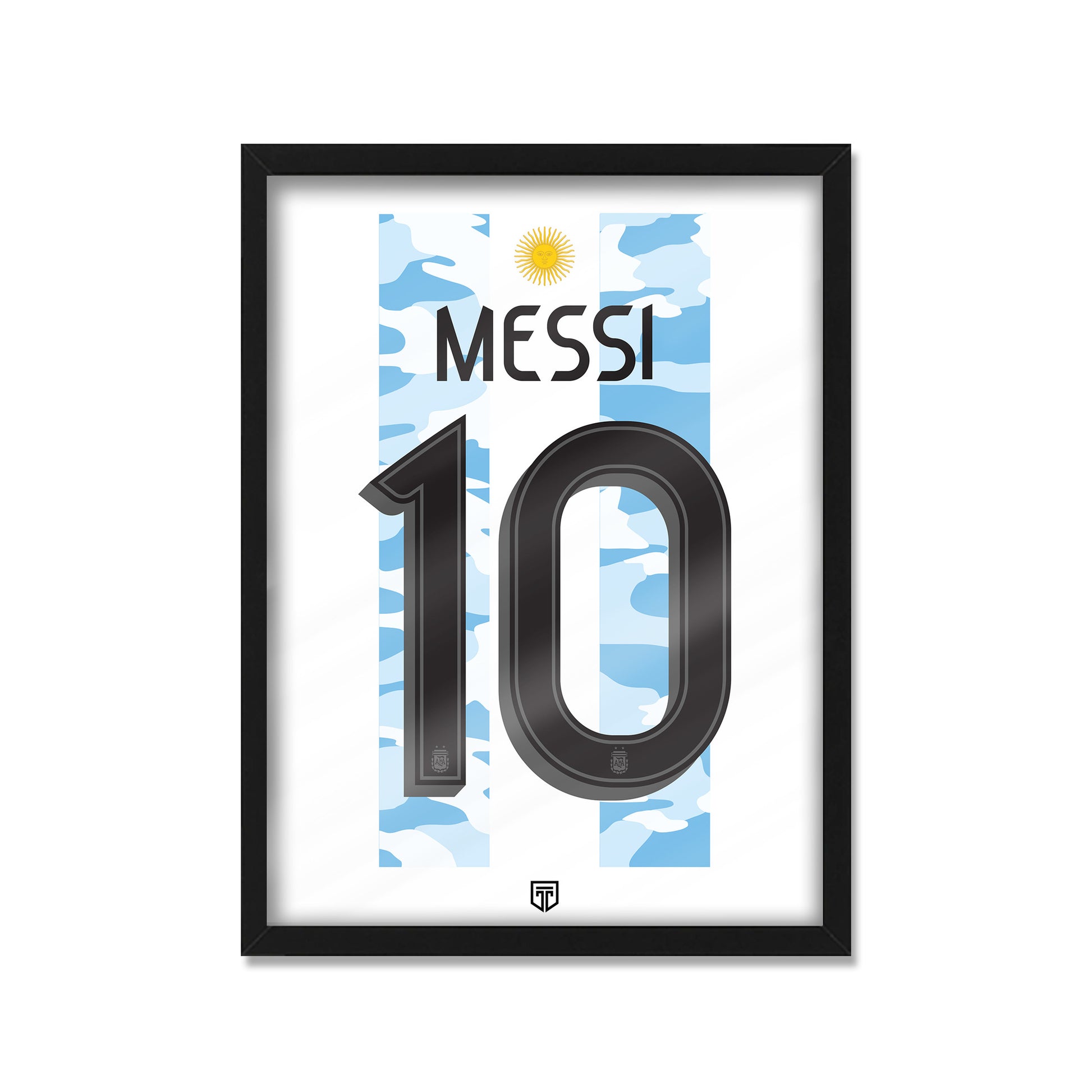 CUADRO DECORATIVO CAMISETA ENMARCADA FÚTBOL ILUSTRACIÓN MESSI ARGENTINA 2021