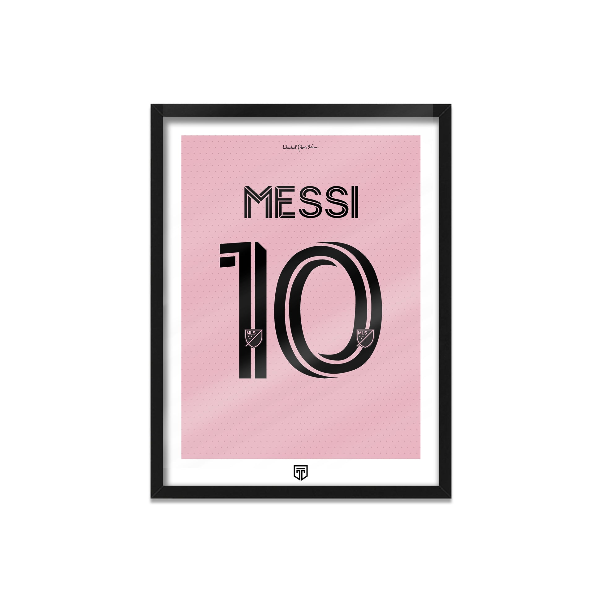 CUADRO DECORATIVO CAMISETA ENMARCADA FÚTBOL ILUSTRACIÓN MESSI INTER MIAMI FC