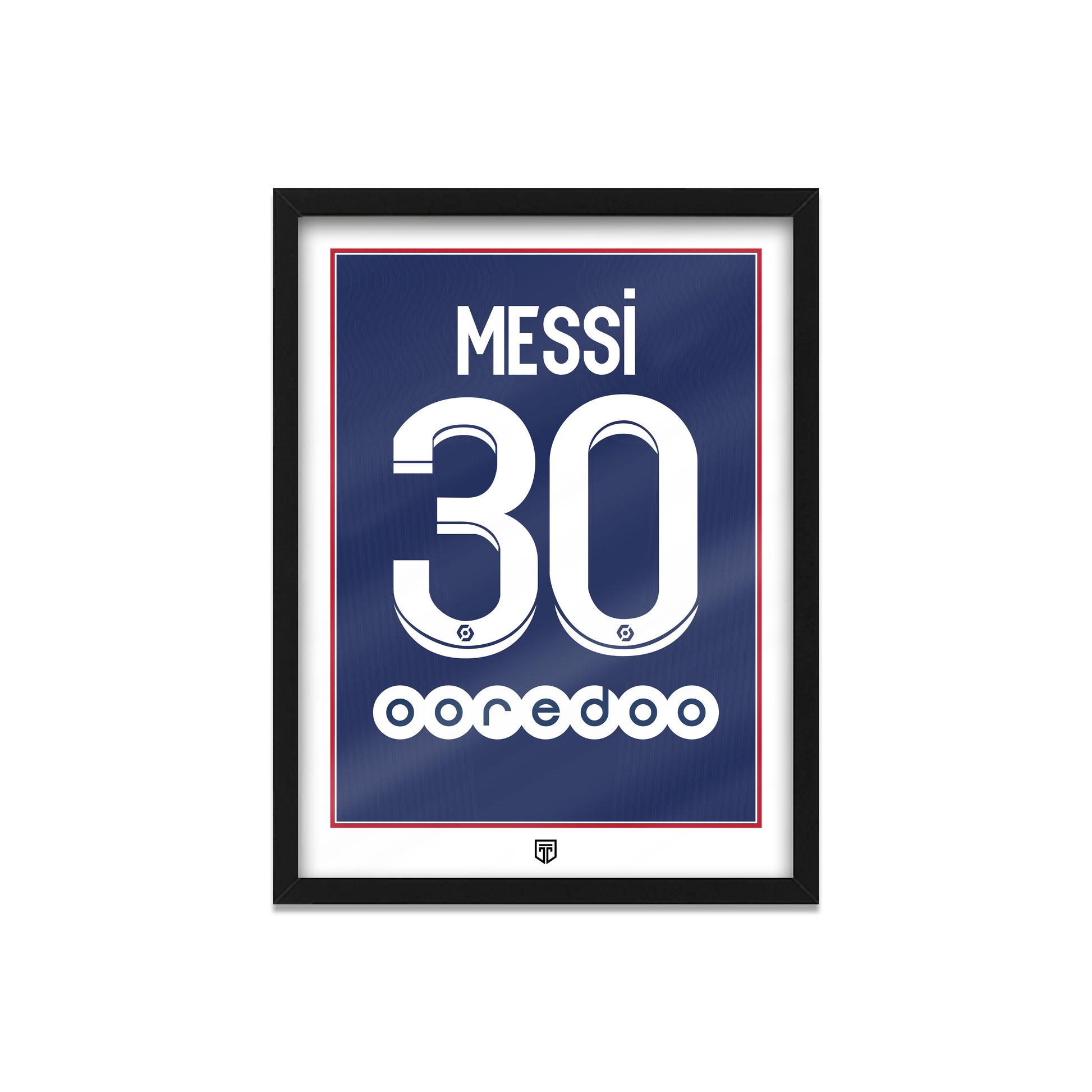 CUADRO DECORATIVO CAMISETA ENMARCADA FÚTBOL ILUSTRACIÓN MESSI PSG 2021