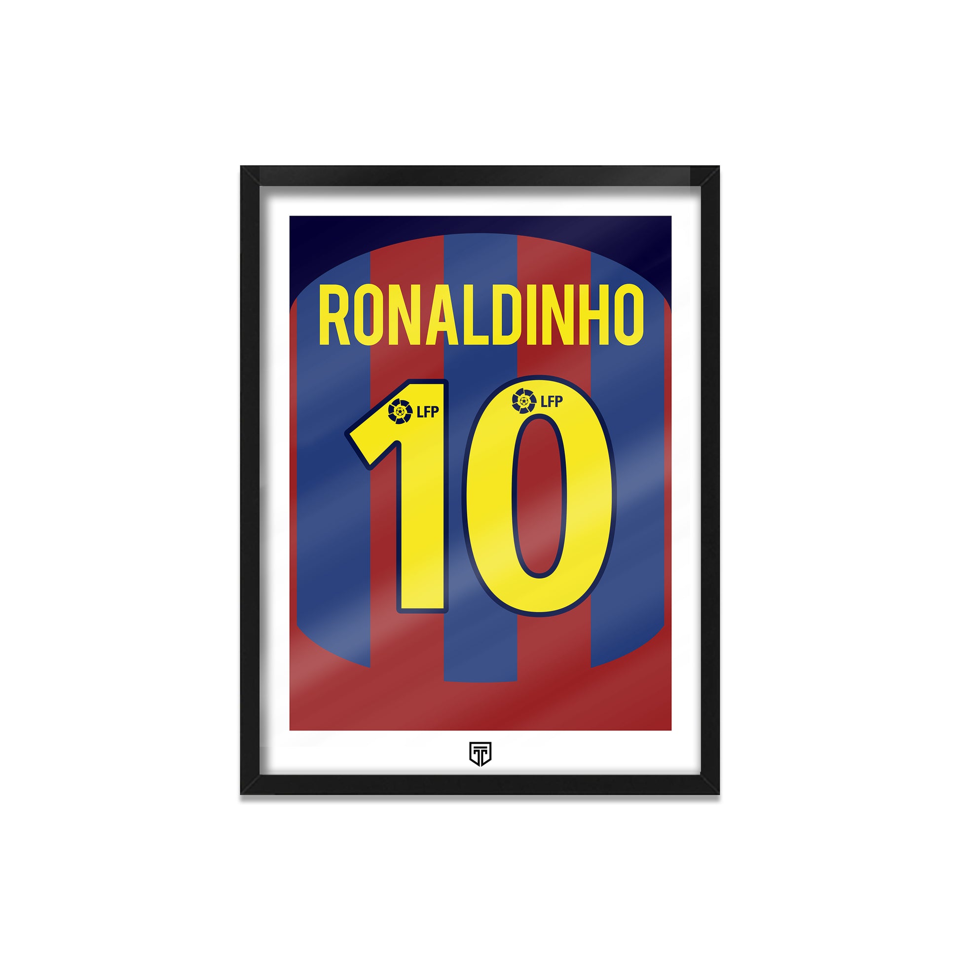 CUADRO DECORATIVO CAMISETA ENMARCADA FÚTBOL ILUSTRACIÓN RONALDINHO BARCELONA 2003