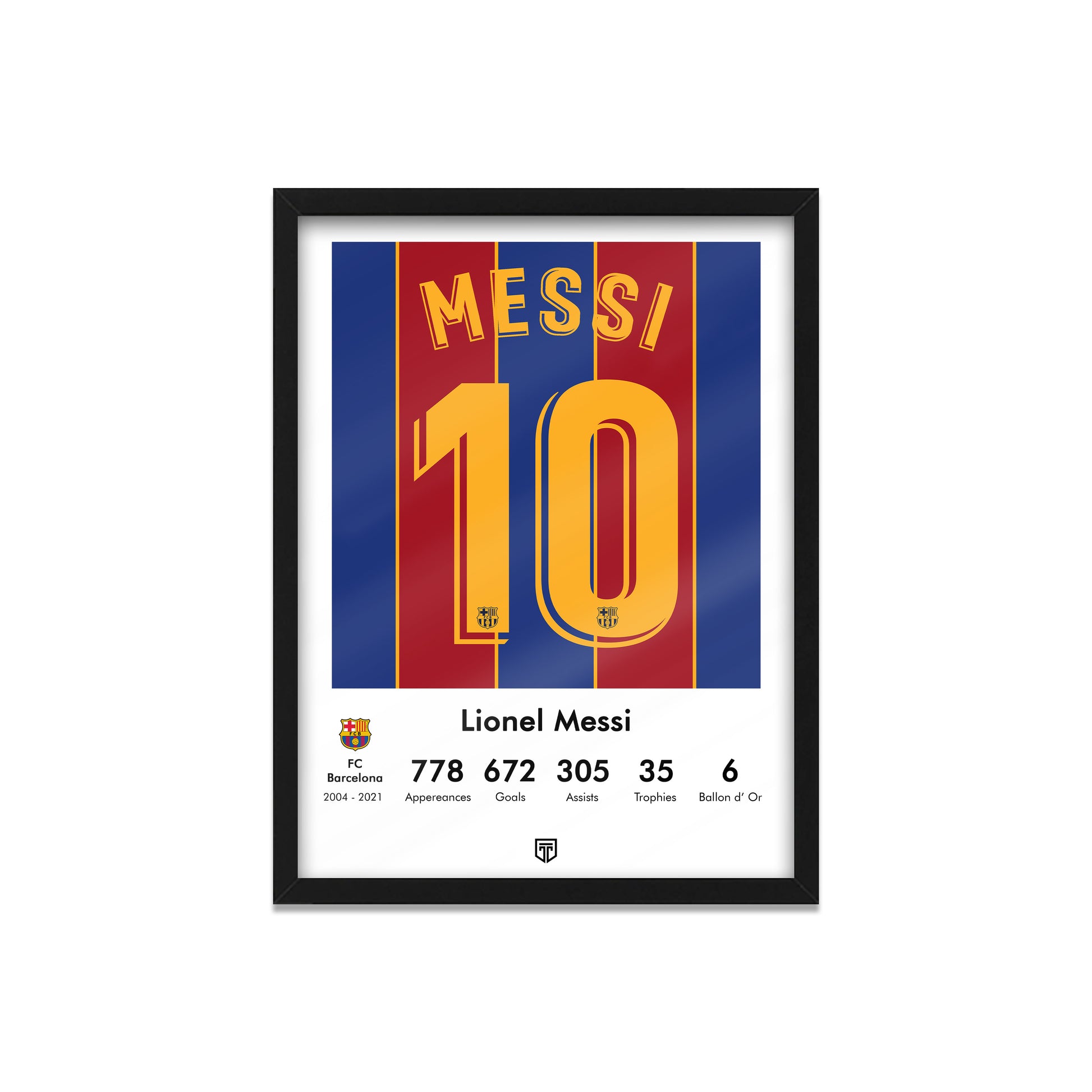CUADRO DECORATIVO CAMISETA ENMARCADA FÚTBOL ILUSTRACIÓN MESSI BARCELONA HALL OF FAME