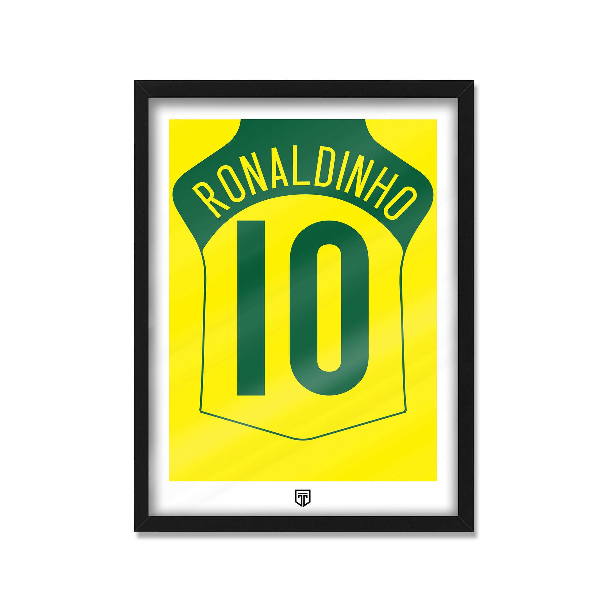CUADRO DECORATIVO CAMISETA ENMARCADA FÚTBOL ILUSTRACIÓN RONALDINHO BRASIL 2005