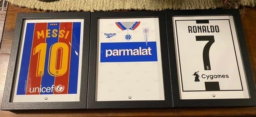 CUADRO DECORATIVO CAMISETA ENMARCADA FÚTBOL ILUSTRACIÓN UC UNIVERSIDAD CATÓLICA 1997 ENMARCACIÓN